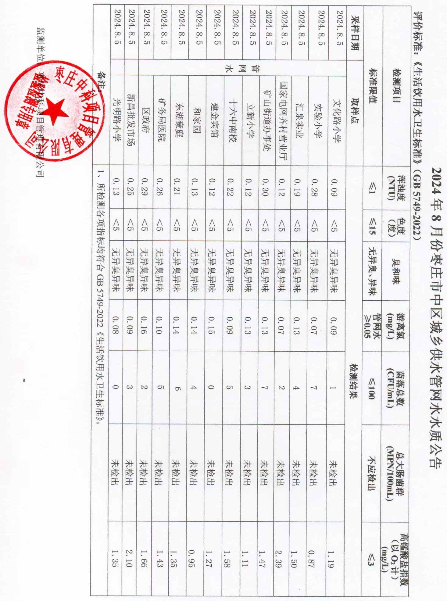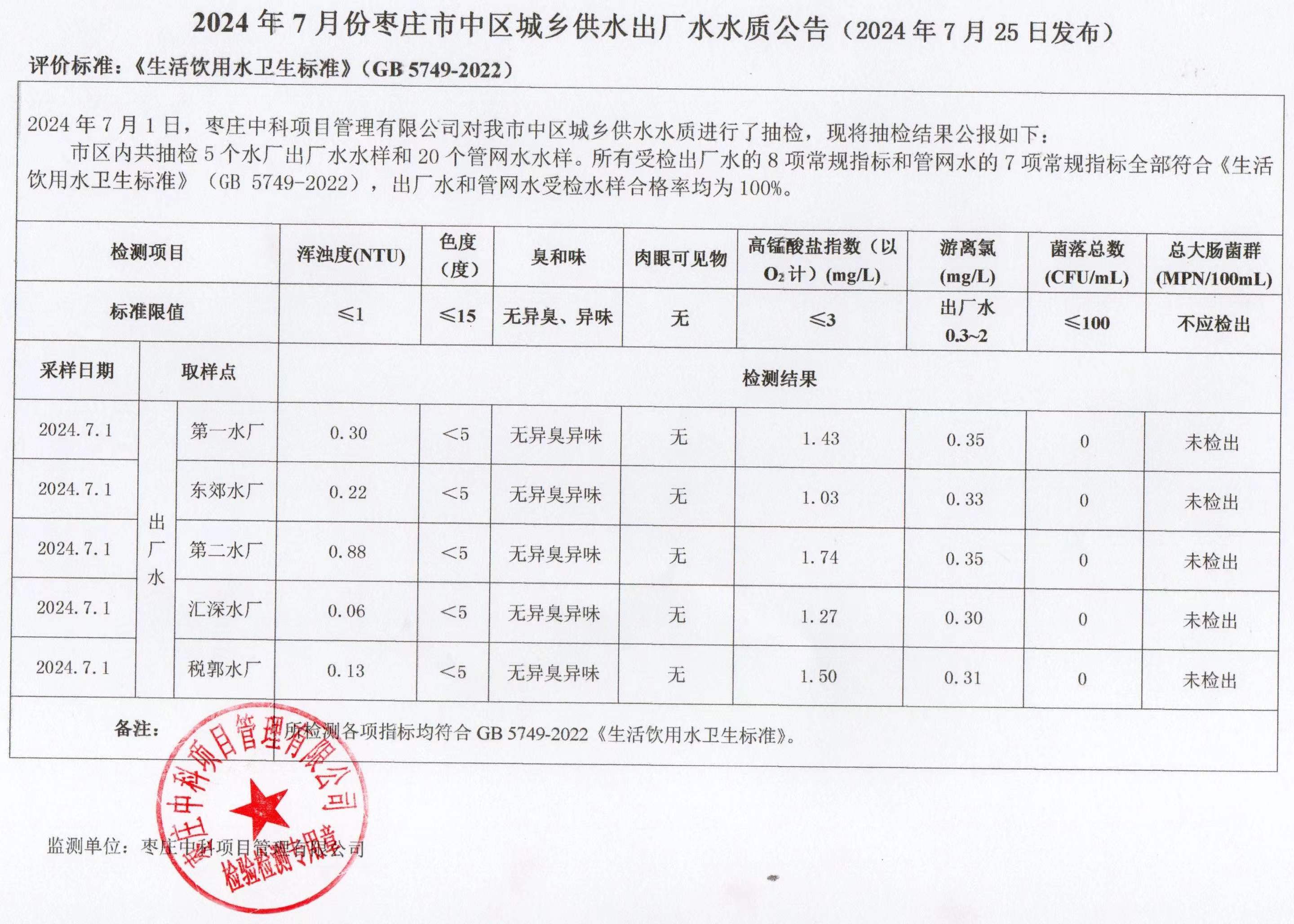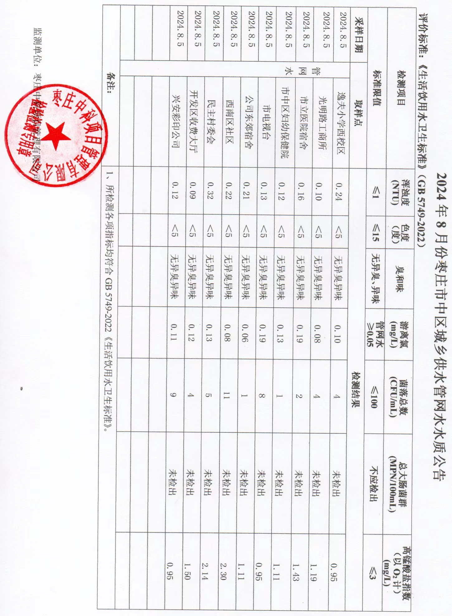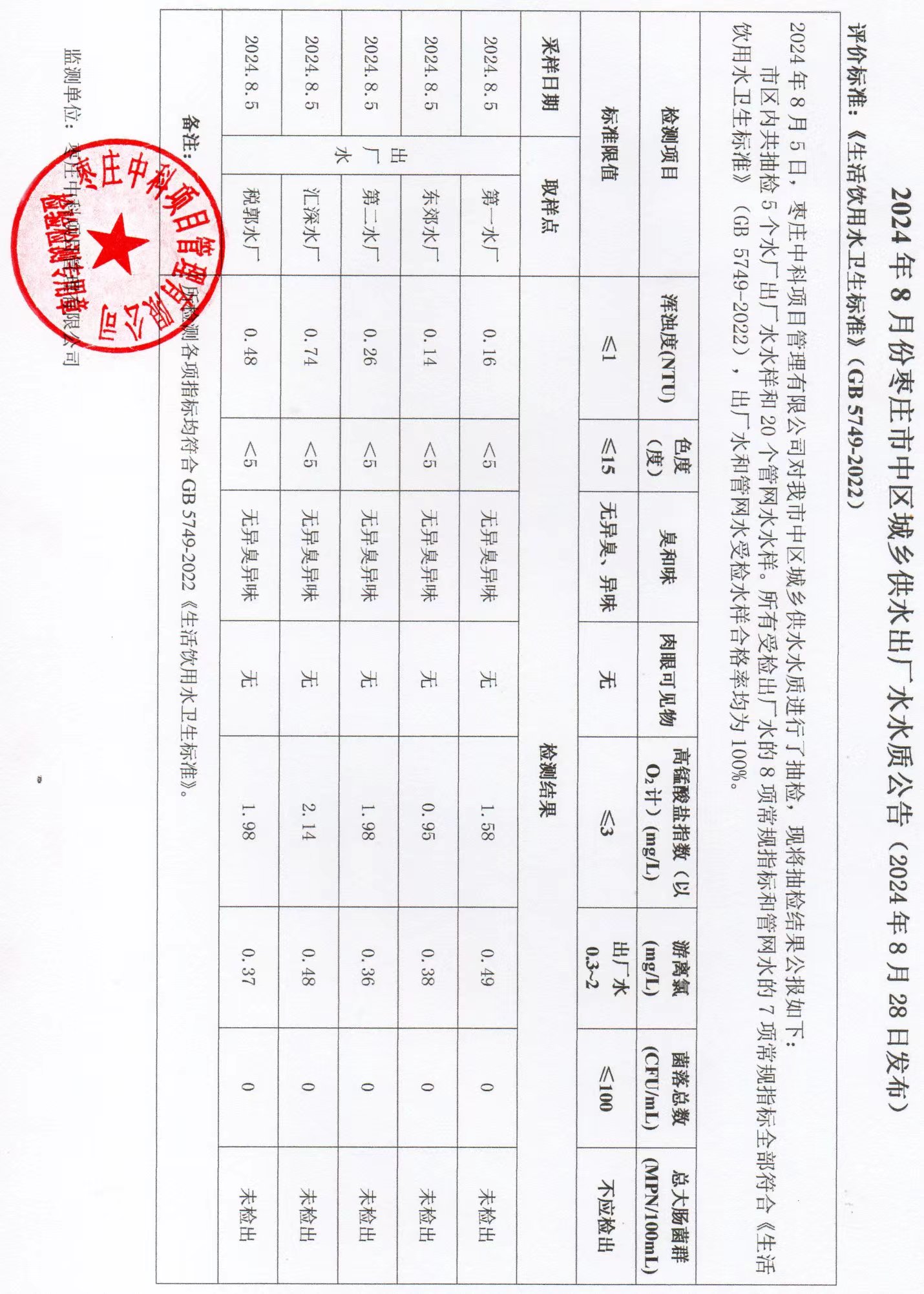 04-枣庄市2024年7月-12月供水水质