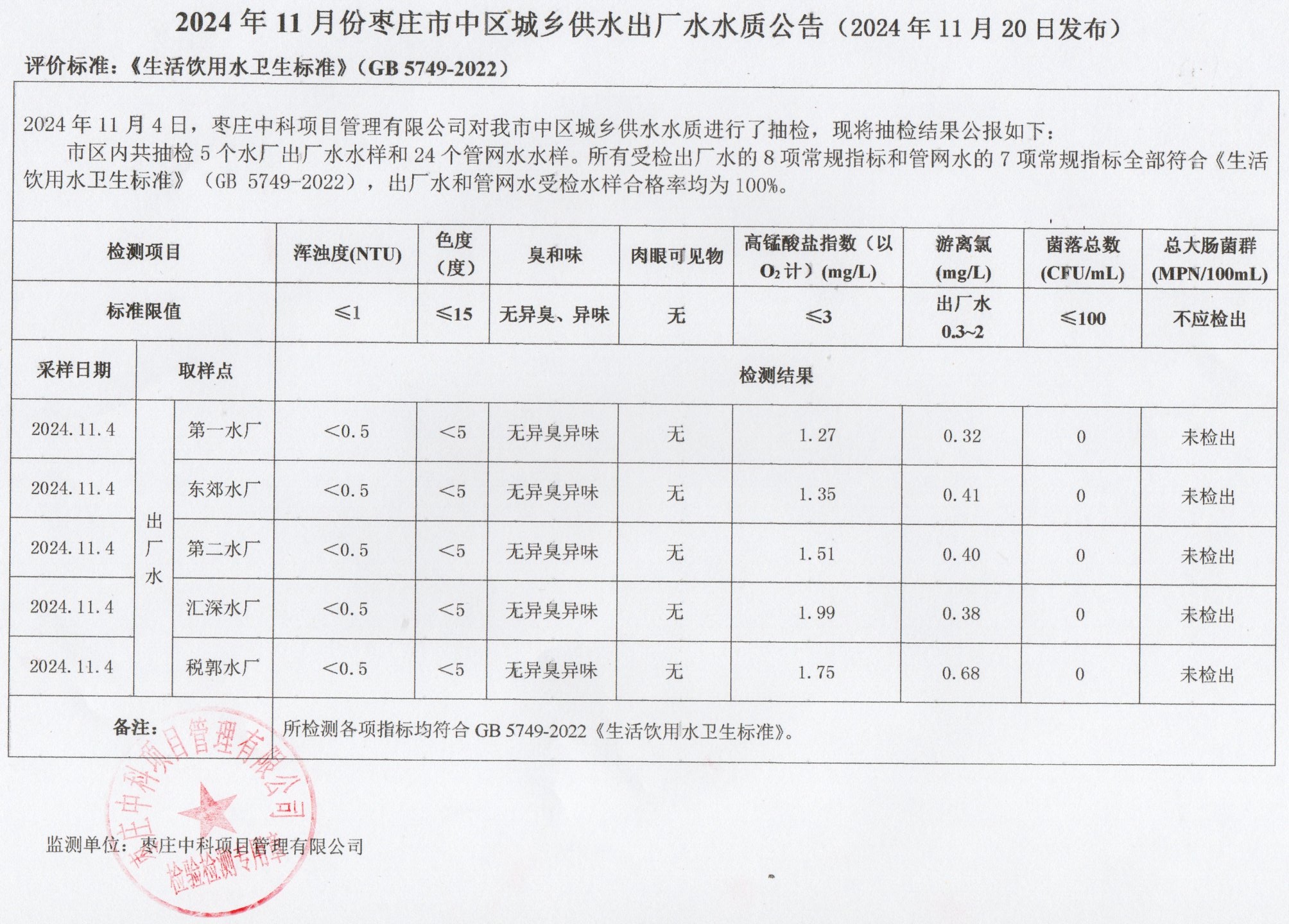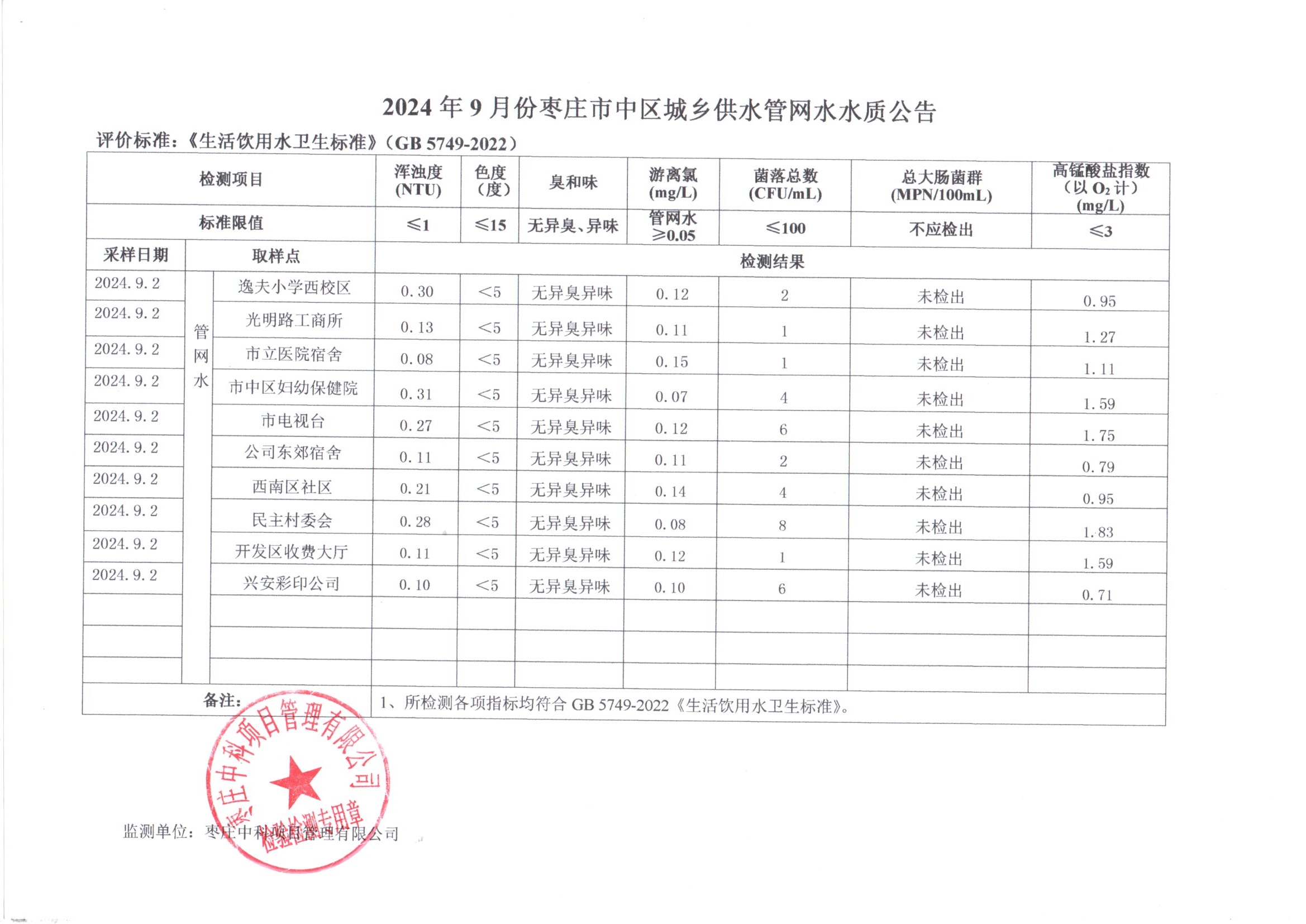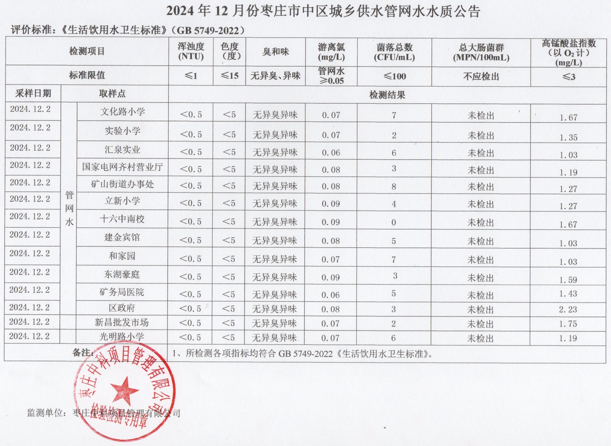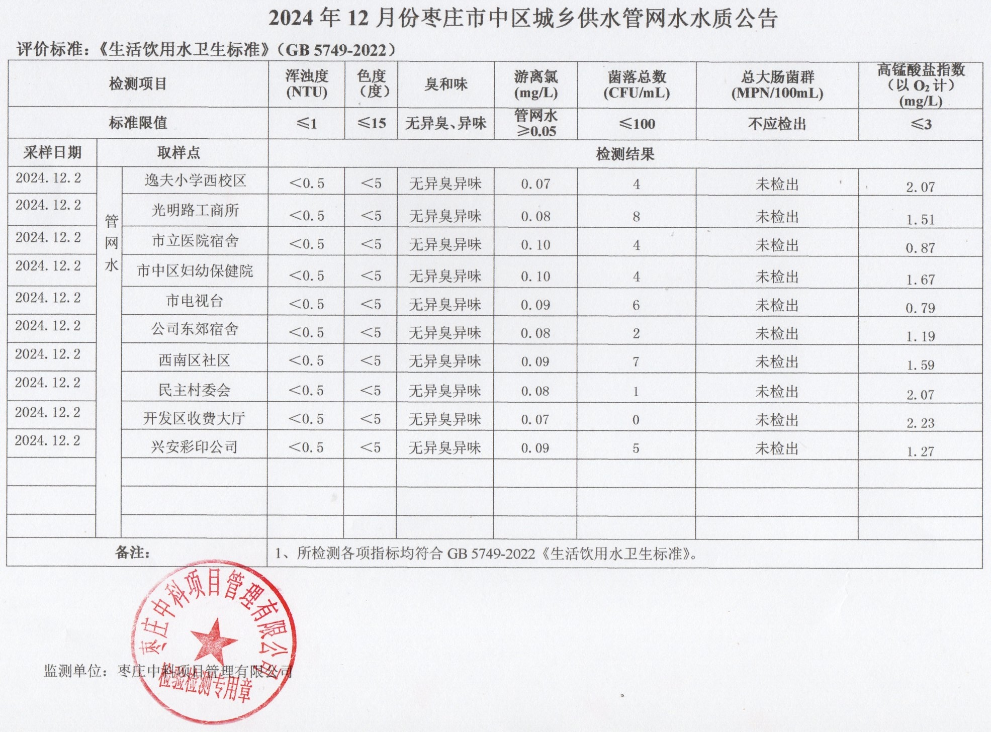 04-枣庄市2024年7月-12月供水水质