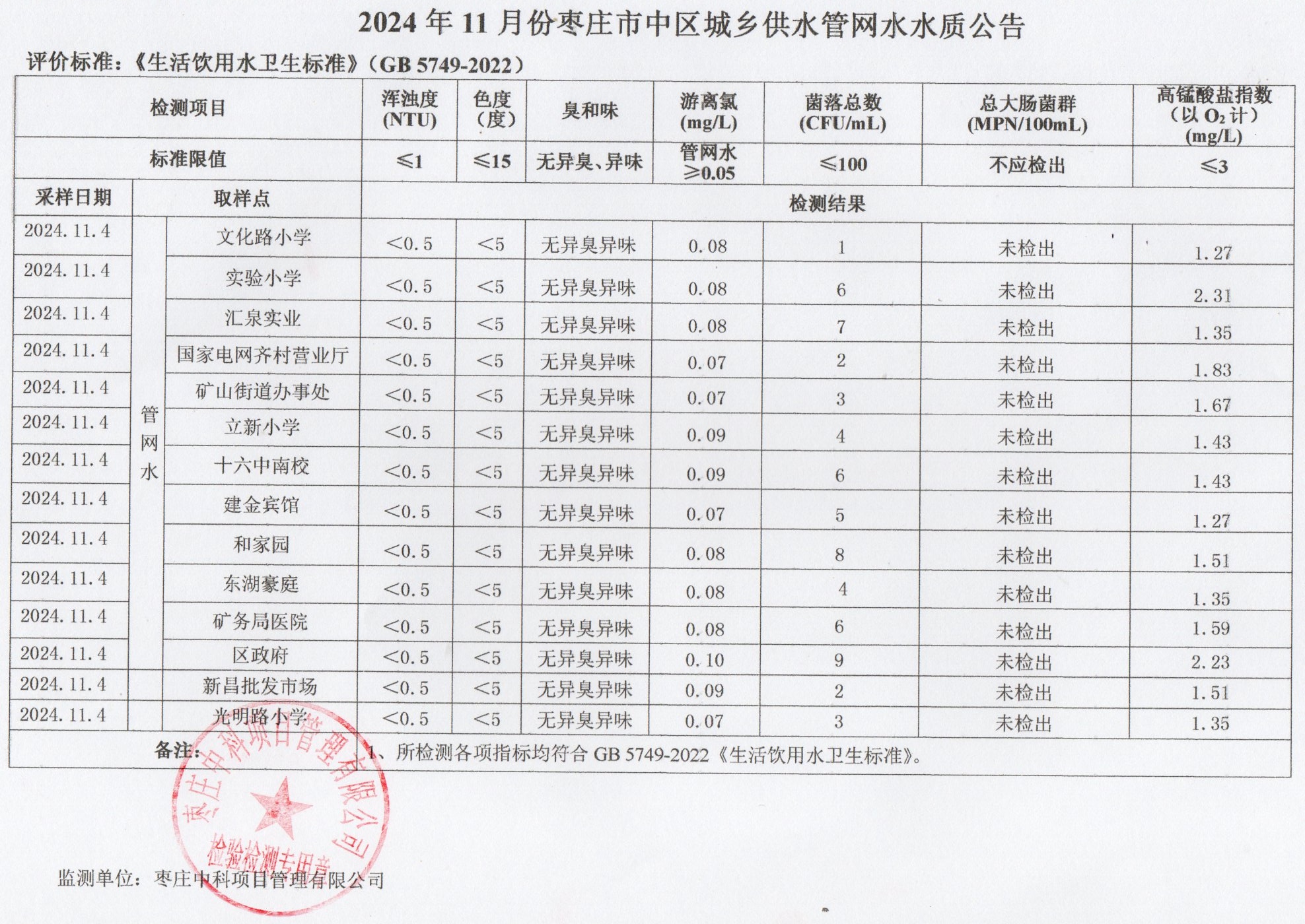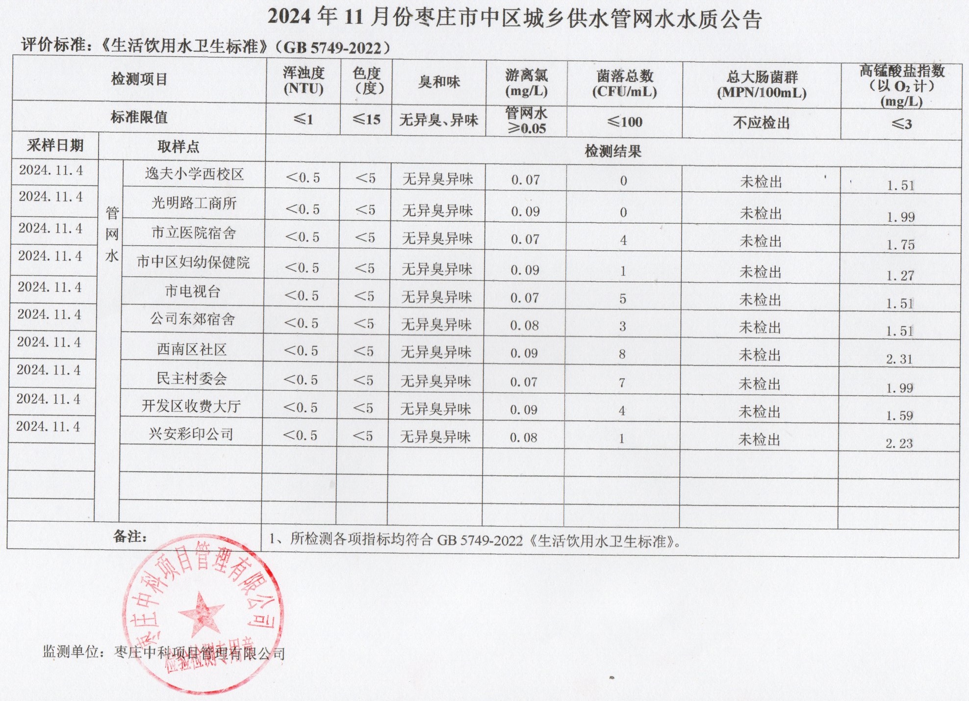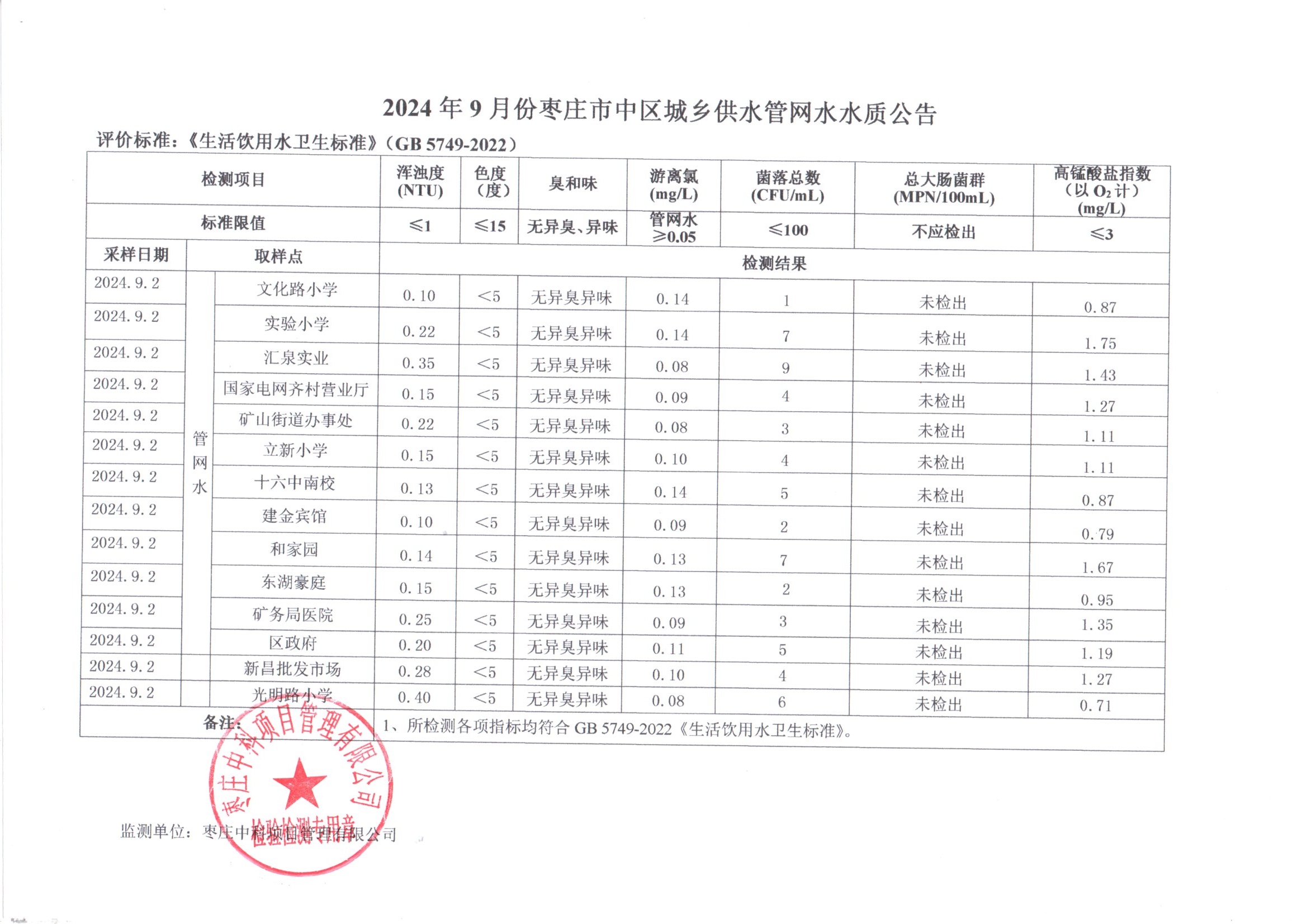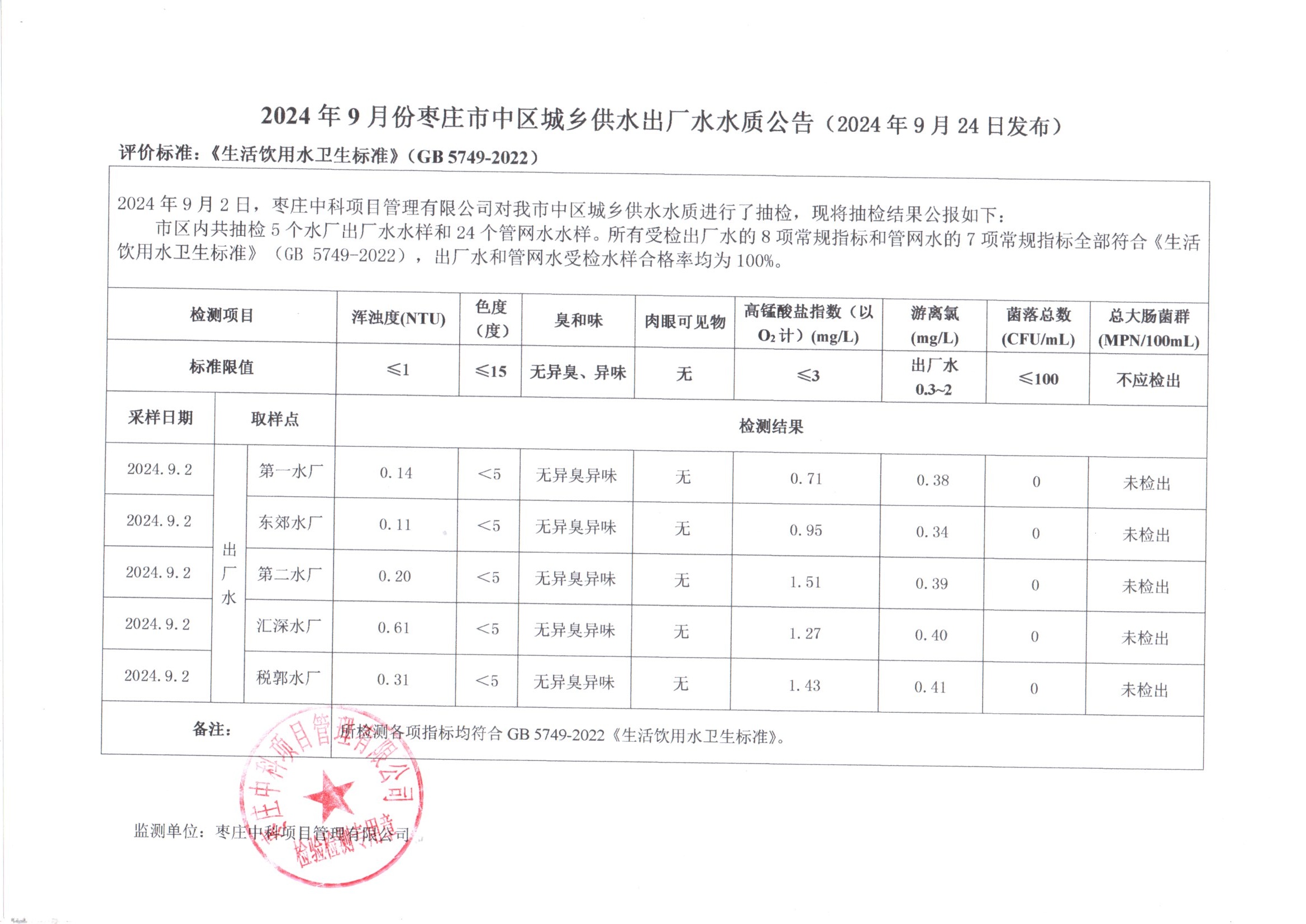 04-枣庄市2024年7月-12月供水水质