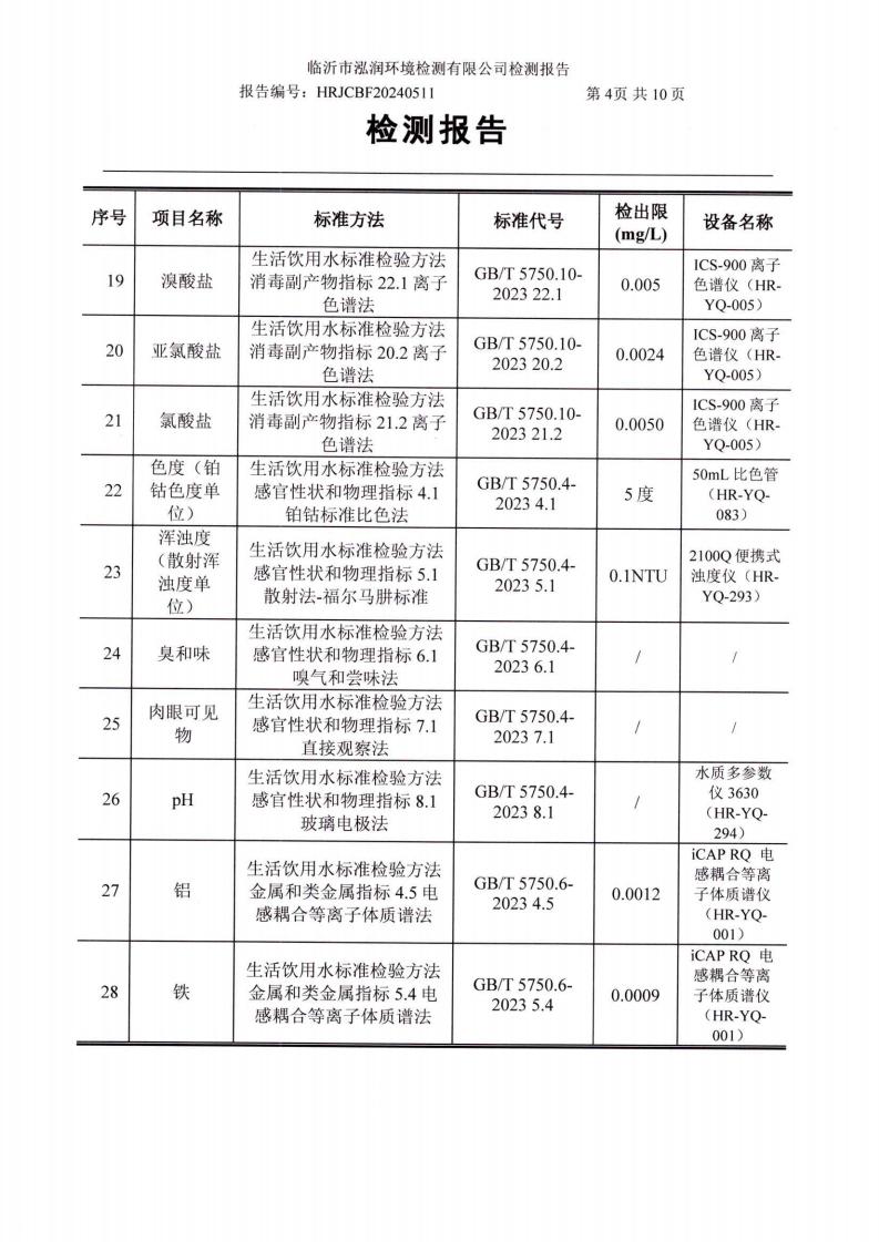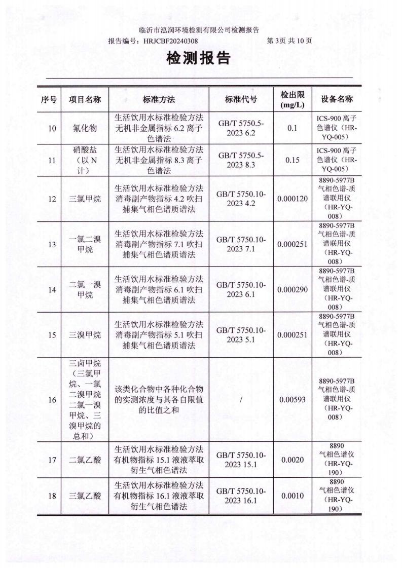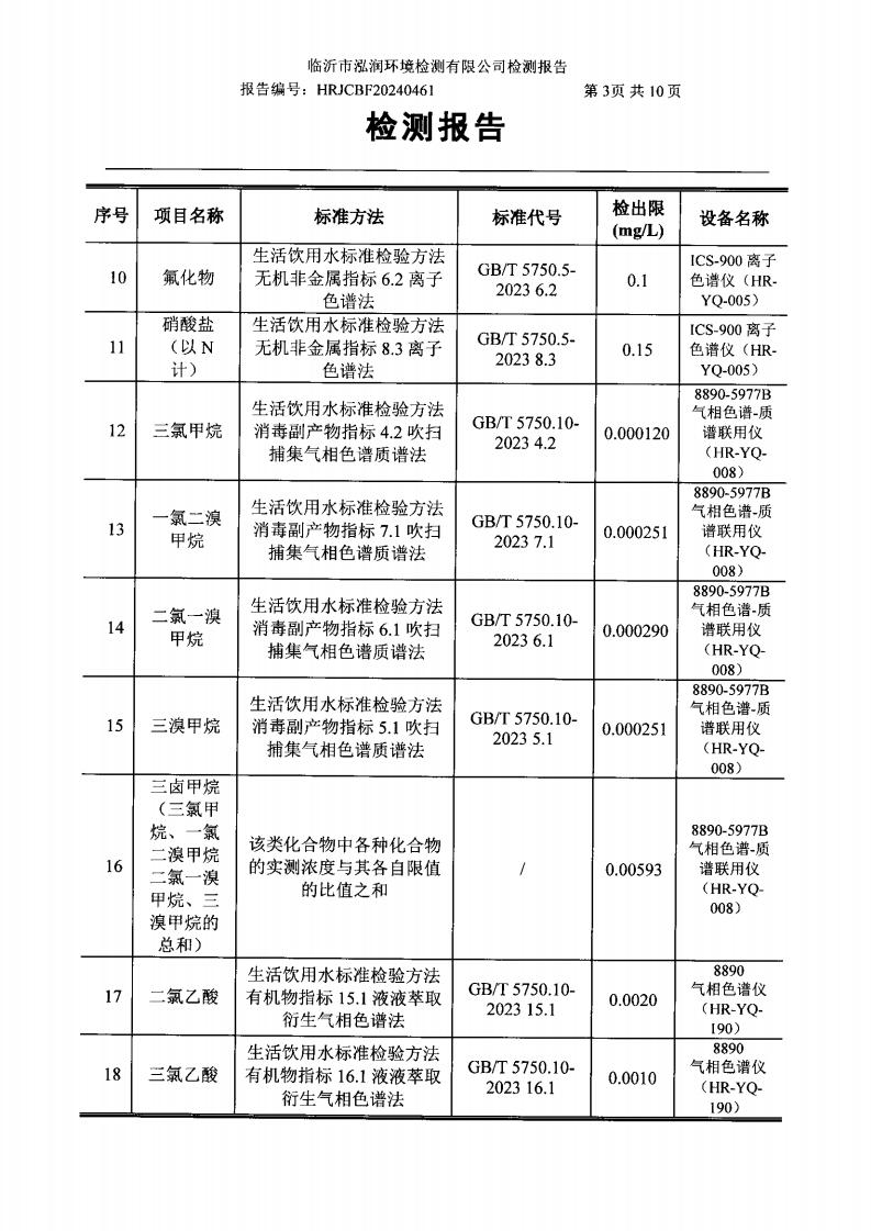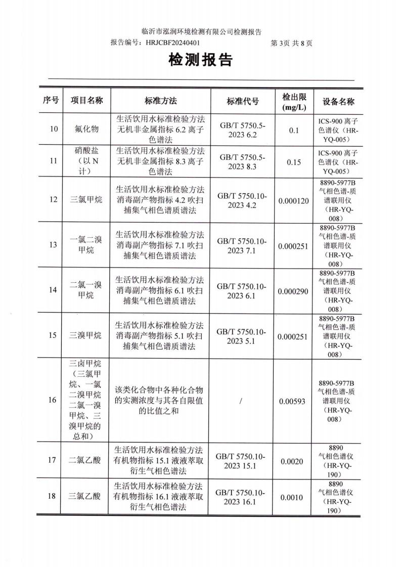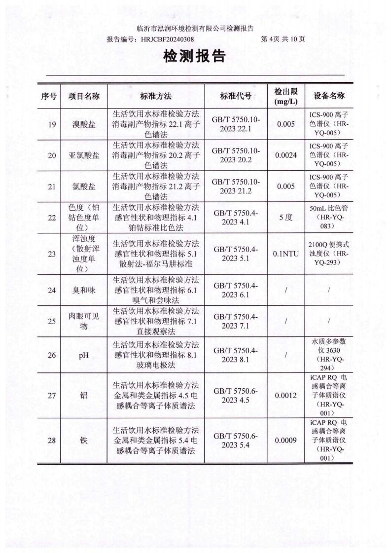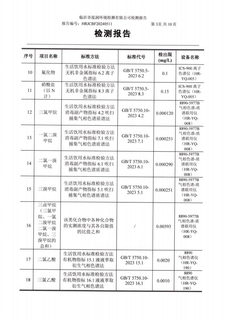 2024年10月出厂水水质检测报告(临沂市水务集团)