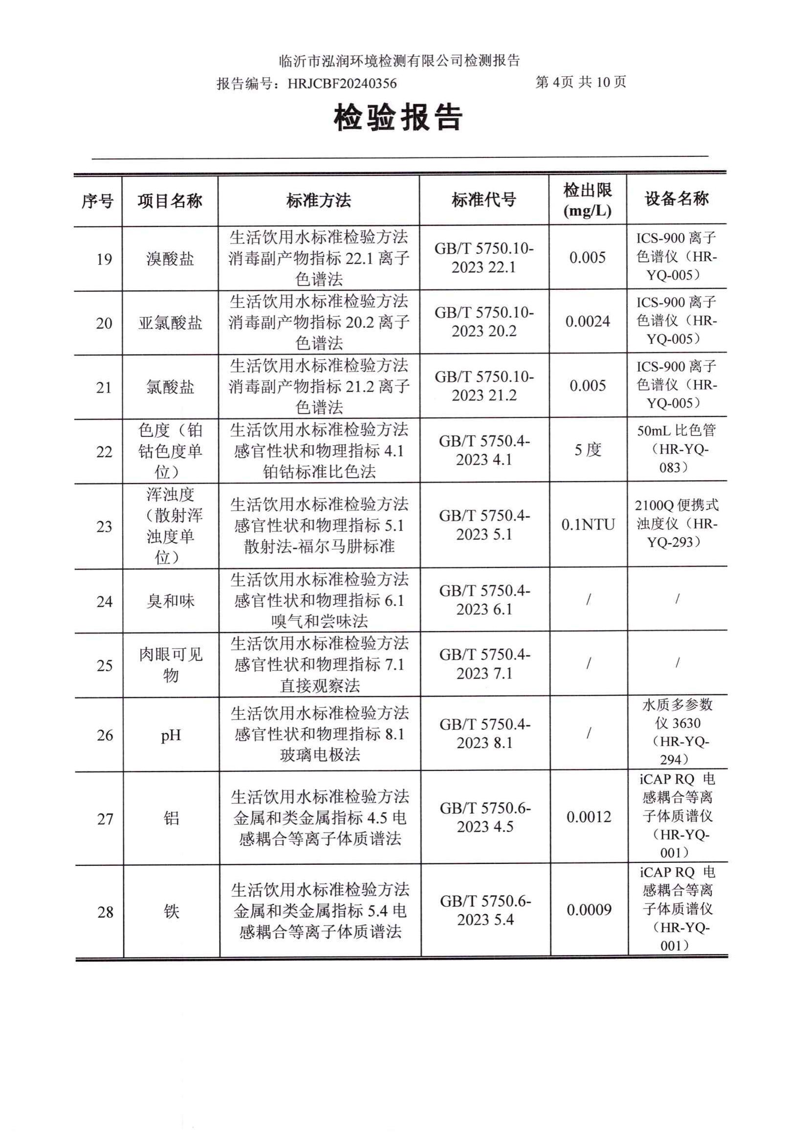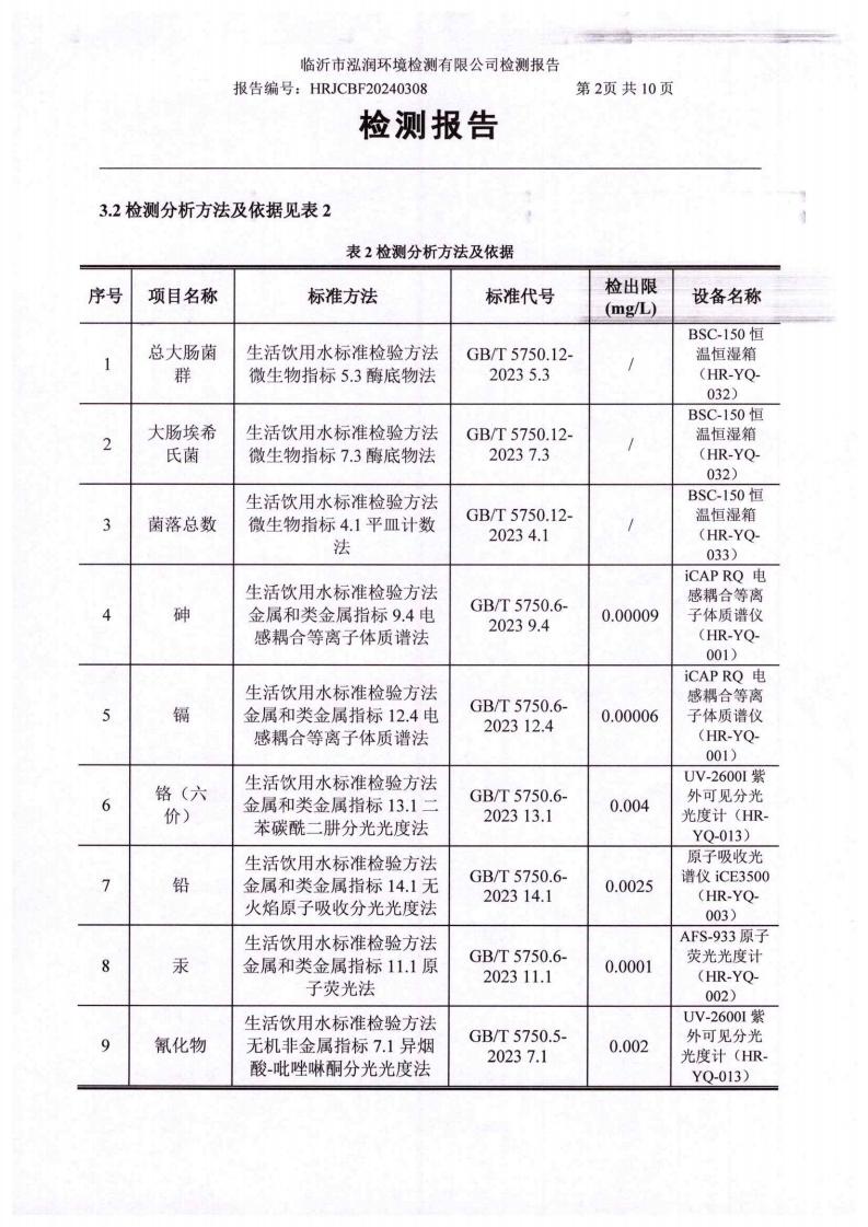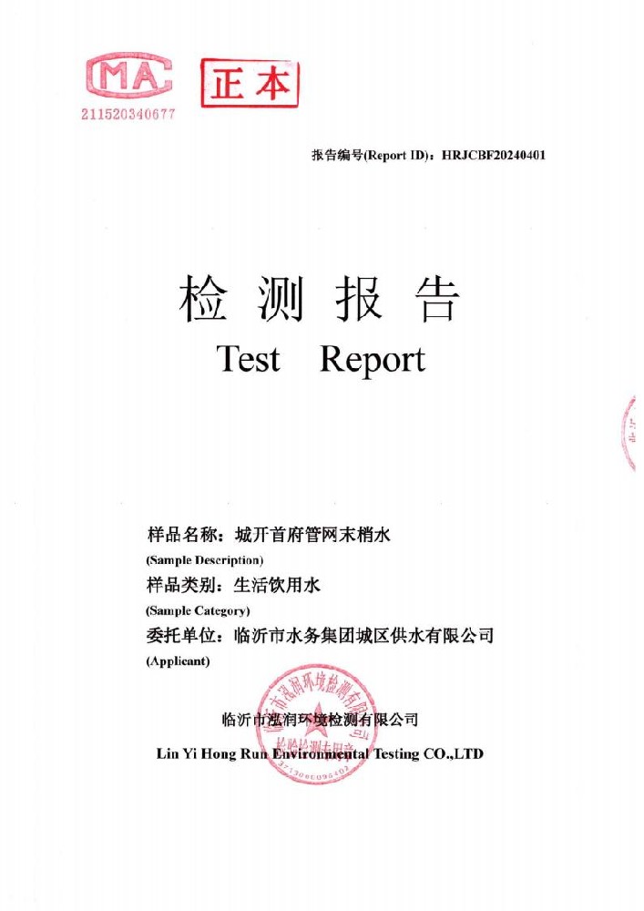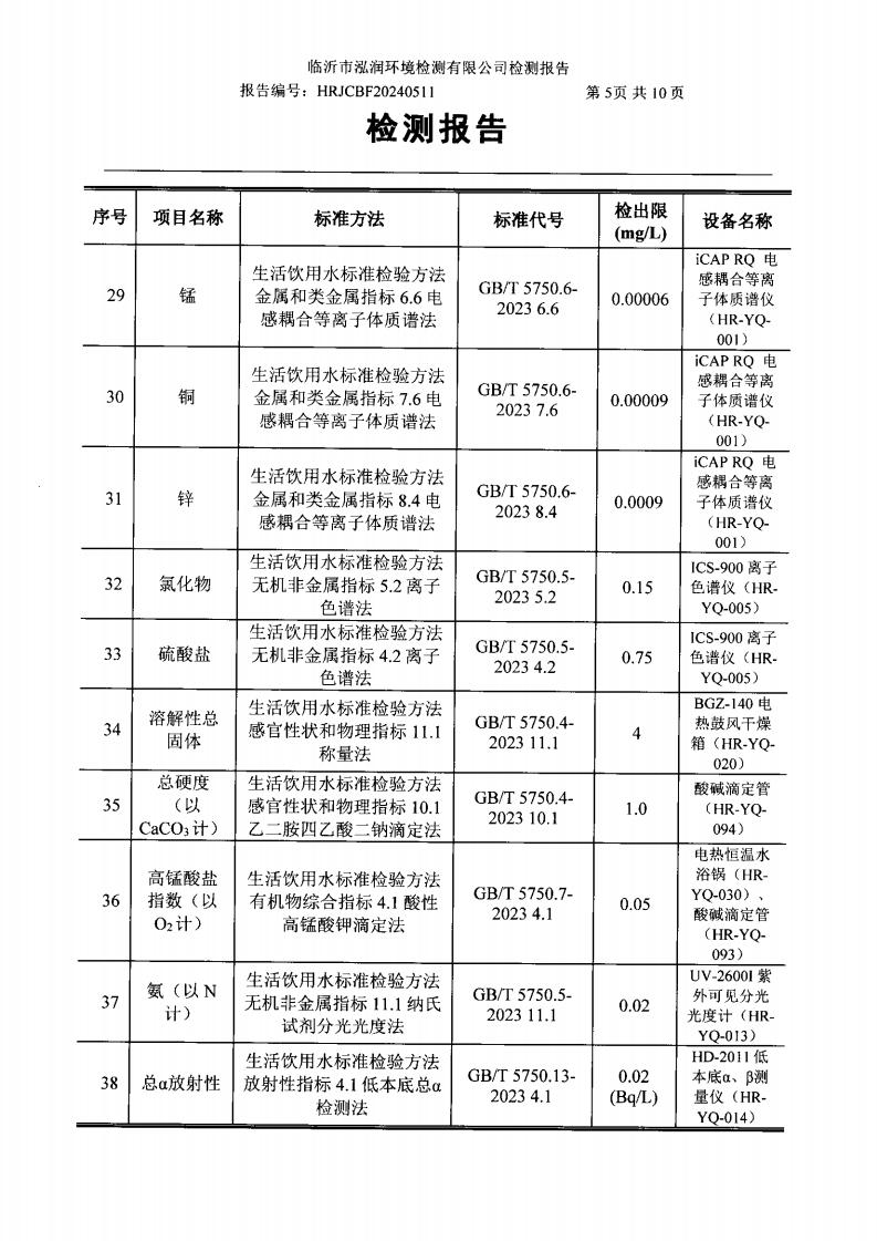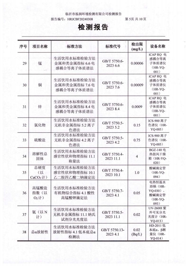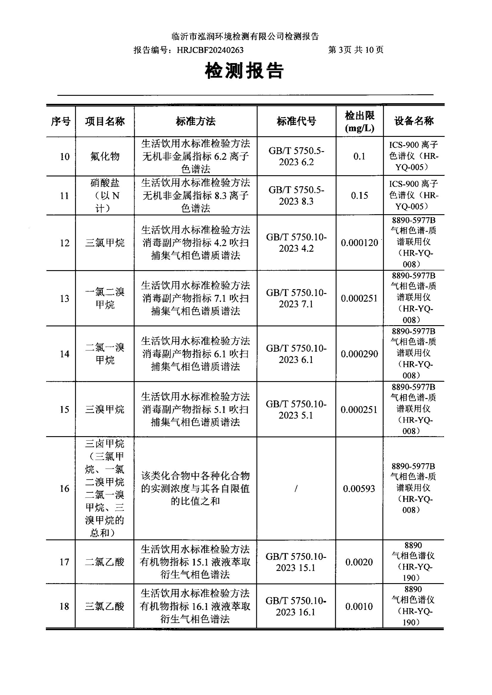 2024年10月出厂水水质检测报告(临沂市水务集团)