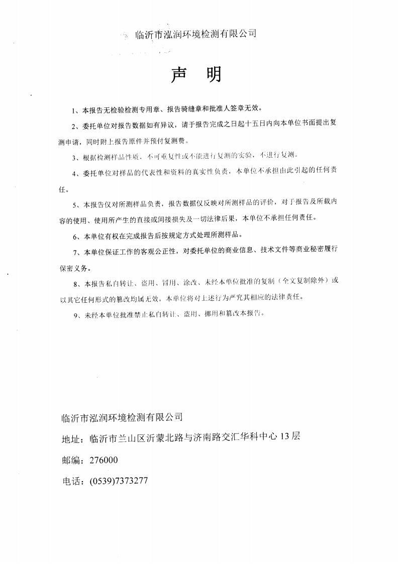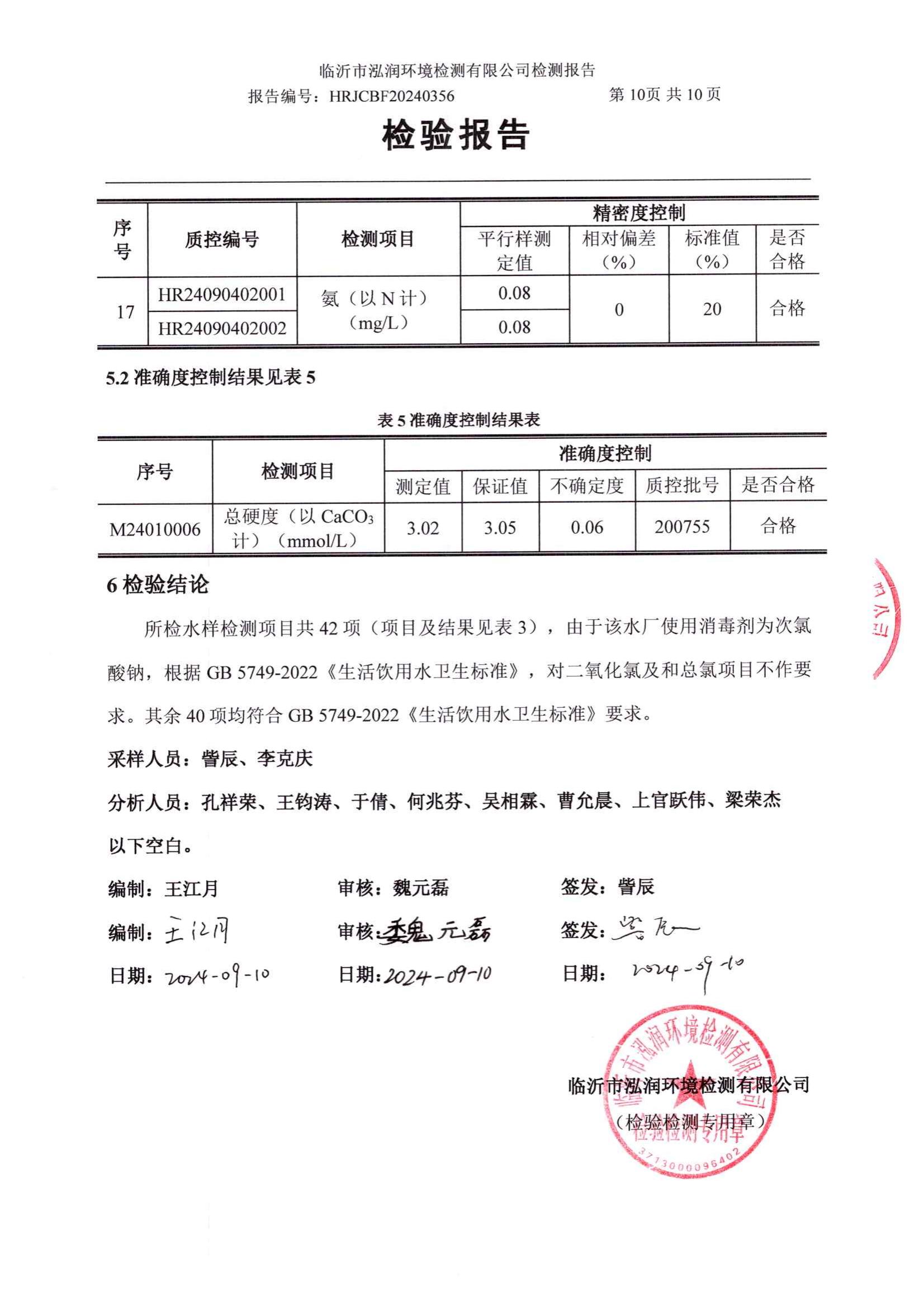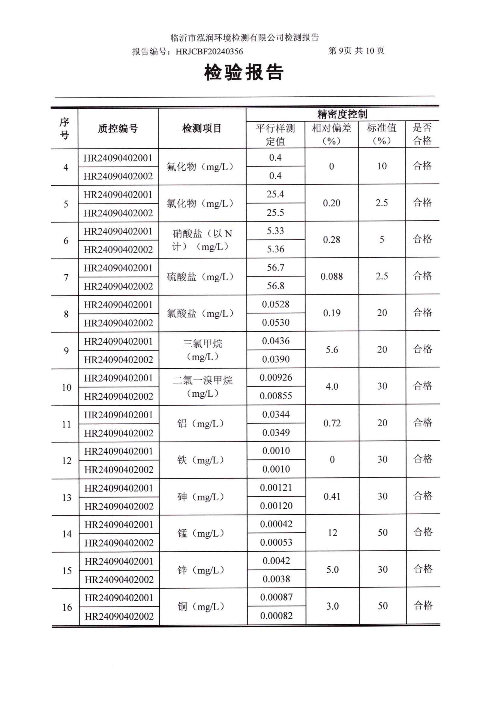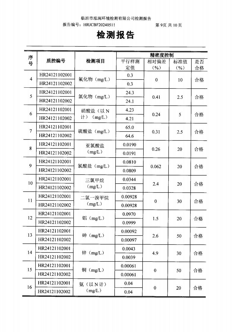 2024年9月出厂水水质检测报告(临沂市水务集团)