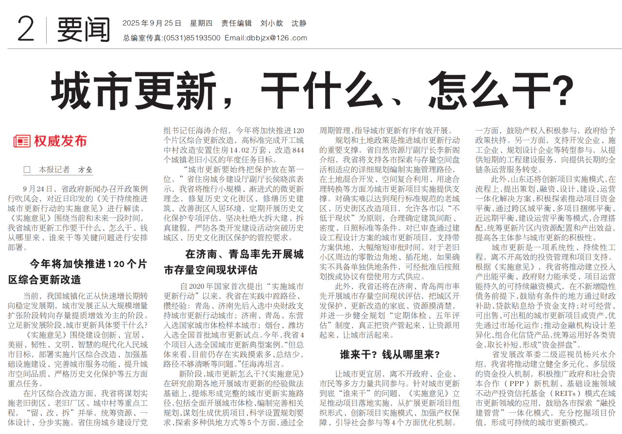 此外,我省还将在济南、青岛两市率先开展城市存量空间现状评估,把城区开发保护、更新改造的家底、资源摸清楚,并进一步健全规划“定期体检、五年评估”制度,真正把资产管起来、让资源用起来、让城市活起来。