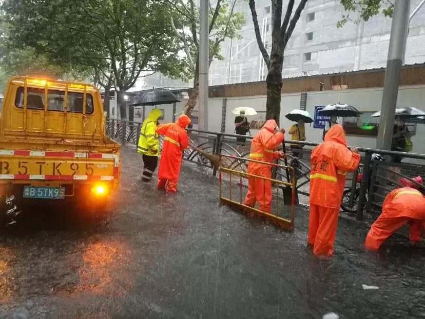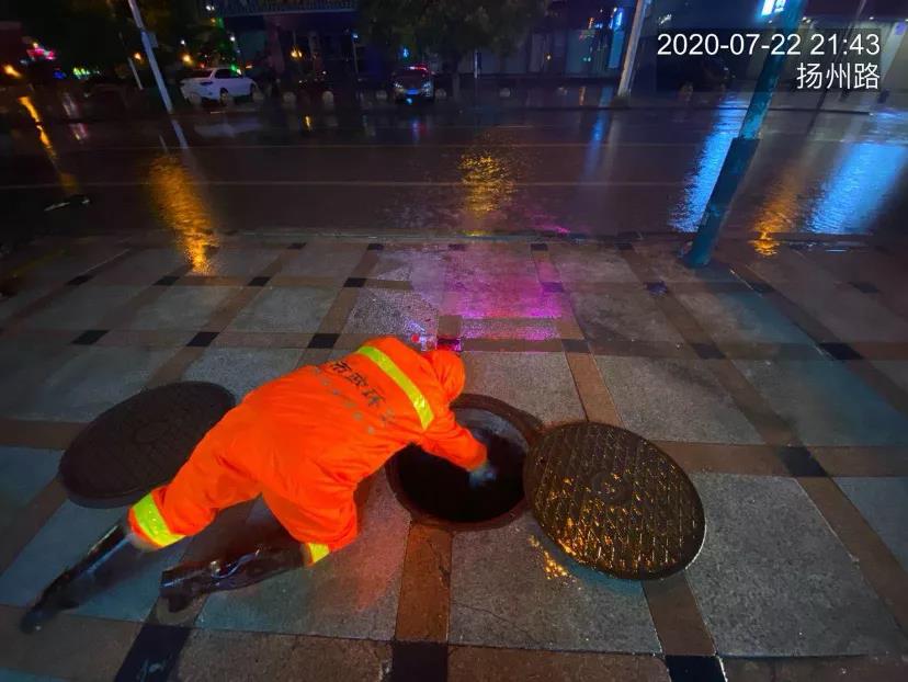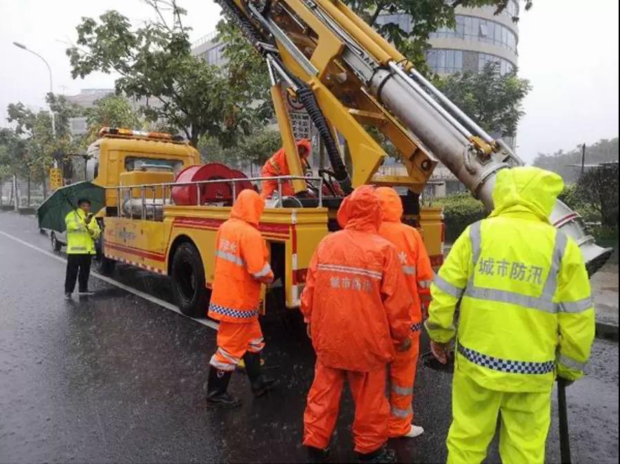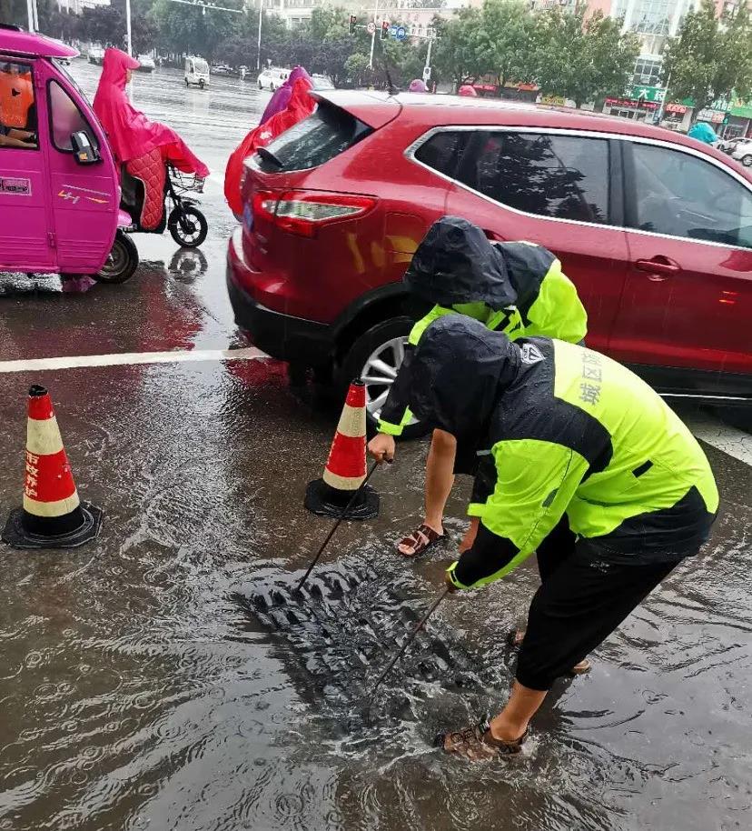 发扬城管“铁军”精神,敢于担当、不畏艰险、勇挑重担、砥砺前行,坚守防汛第一线,确保城市防汛工作落到实处。泰安市出动强排泵车、大功率排水泵33台次,对龙潭路与万官大街、泰玻大街东头等积水进行强排,快速恢复道路通行。