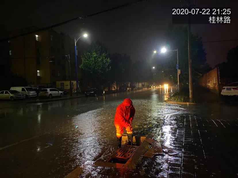 为保障城区市民的通行,平度市防汛队员们通宵驻守在全市各个积水点,打开雨水箅子、疏通管道、清理垃圾,保障行人安全。经过325名建设者连夜奋战,城区积水全部排空,市民生产生活秩序维持正常。