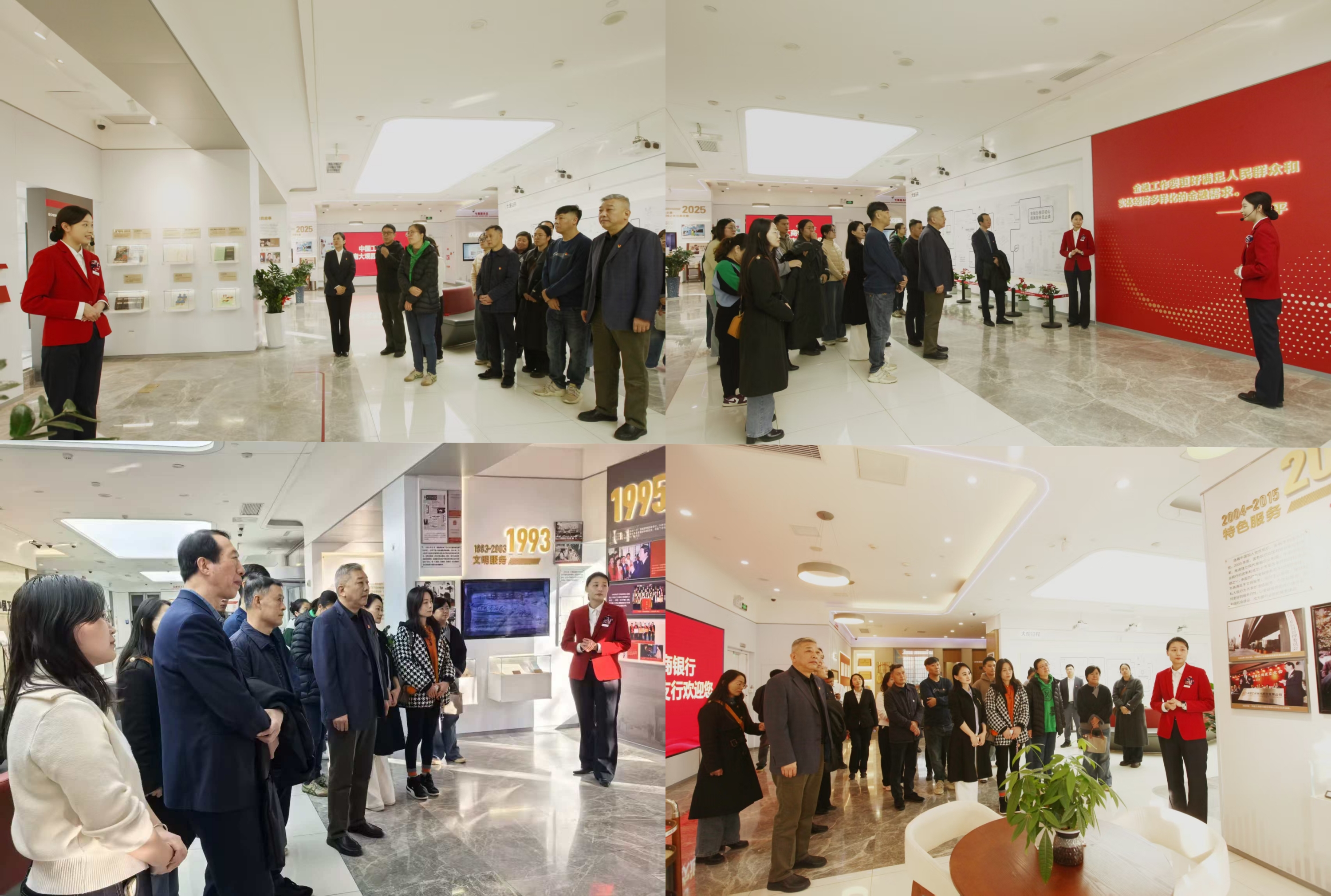 活动伊始,山东省住房公积金协会秘书长李琛介绍了本次活动的背景及意义。随后,一行人踏入工行党建学习园地,一幅幅承载初心的照片、一段段记录使命的文字、展现了工行始终坚守“金融为民”的政治底色。从革命时期的金融支援到新时代的普惠金融实践,从党建与业务深度融合的创新举措到党员先锋岗的示范引领,每一处场景都传递着红色基因的力量,让参与者深刻体会到党建是金融行业高质量发展的“根”与“魂”。