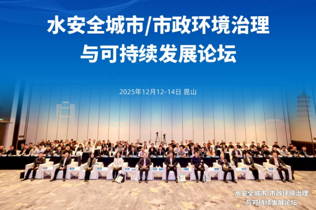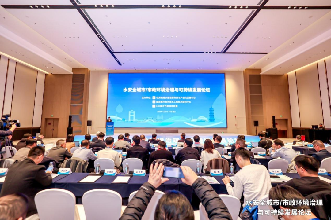 为全面贯彻党的二十届四中全会和中央城市工作会议精神,2025年12月13-14日,“水安全城市/市政环境治理与可持续发展论坛”在江苏省昆山市召开。论坛以推动科技创新和产业创新深度融合,赋能城市水安全保障,推进市政环境治理与可持续发展为目标,重点聚焦城市高品质供水产业链协同创新、排水系统安全韧性与数智治理等方面的技术研究与实践经验,助力水务行业高质量发展。论坛由住房和城乡建设部科技与产业化发展中心(以下简称“部科技中心”)、国家城市给水排水工程技术研究中心(以下简称“国家水中心”)、C40城市气候领导联盟共同主办。本次论坛得到住房和城乡建设部城市建设司、江苏省住房和城乡建设厅、昆山市人民政府、昆山市水务局的大力支持。