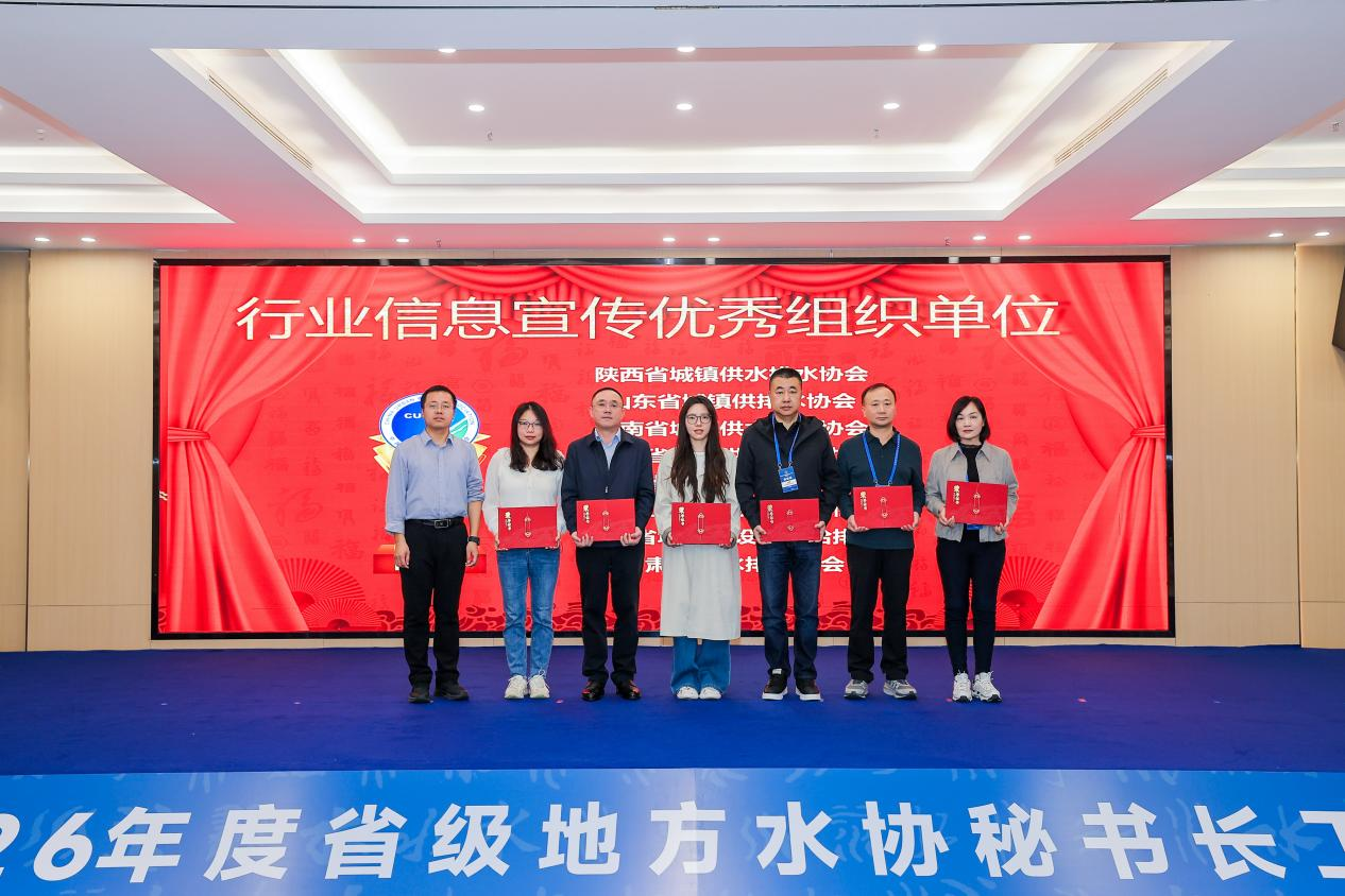 3月16日中国水协在深圳举办2026年度省级地方水协秘书长工作会议,来自全国各省级地方水协、中国水协分支机构的80余位代表参加。会上协会再次荣获中国水协行业信息宣传优秀组织单位,这是协会第四次获此荣誉
