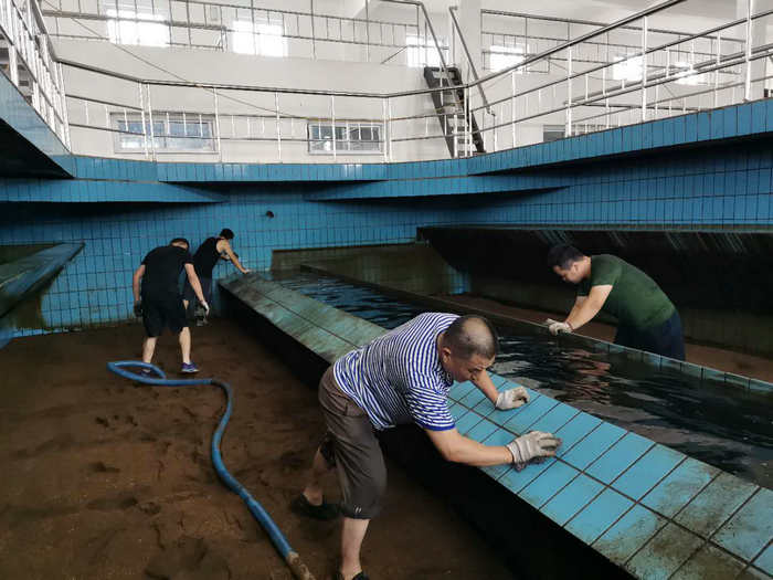 为使清洗工作不对生产和居民供水产生影响,水厂就清洗前调阅了近期供水生产数据作对比分析,制订了详细的水池冲洗方案,科学调度供水运行机组及水位,依次分批对沉淀池进行了清洗。