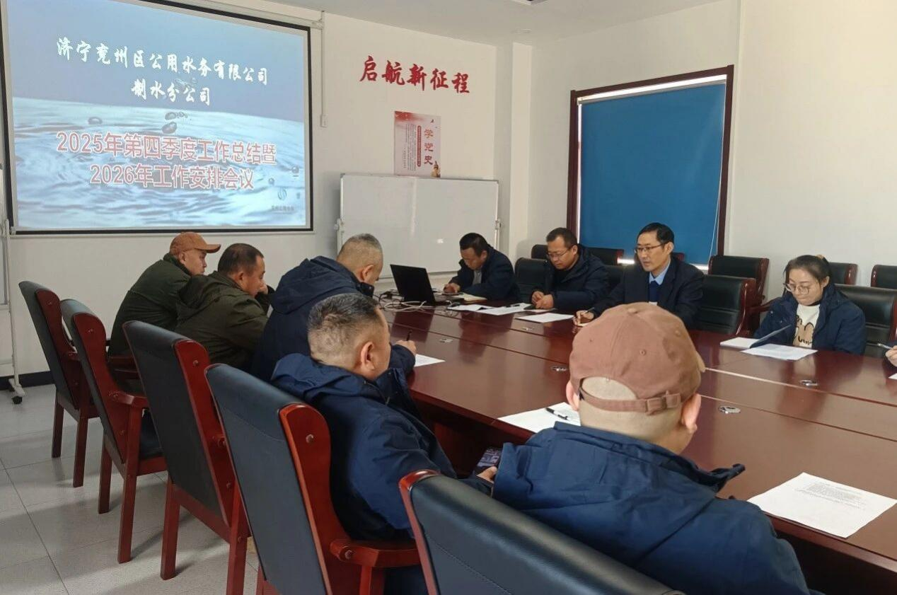 12月25日,济宁兖州区公用水务有限公司召开2025年第四季度供水工作例会。会议全面总结年度工作,科学研判当前保供形势,并就冲刺全年任务目标、坚决打赢冬季供水保卫战作出专项部署。公司分管领导及相关部门职工参会。