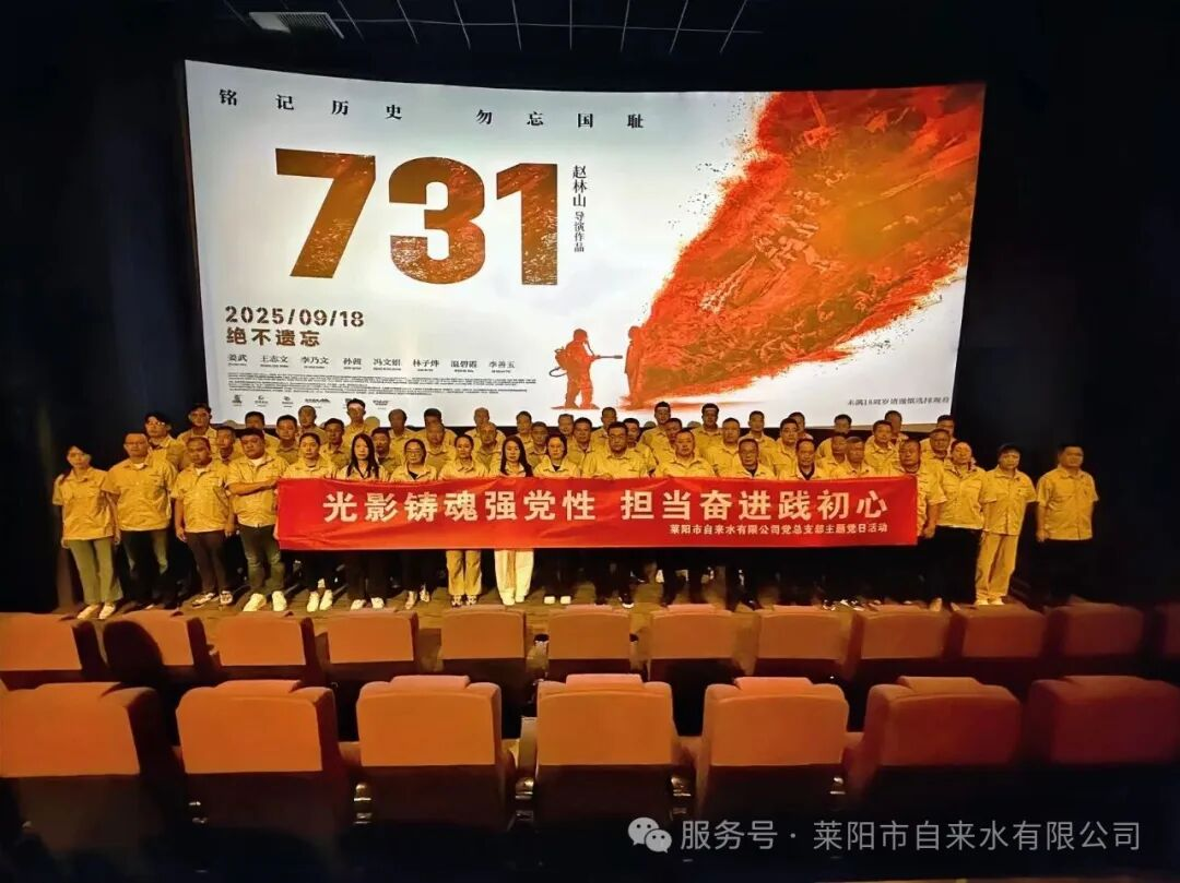 9月18日,莱阳市自来水有限公司党总支组织开展“光影铸魂强党性 担当奋进践初心”主题党日活动。62名党员及入党积极分子集中观看爱国主义影片《731》,于历史回望中淬炼党性,在精神洗礼中凝聚奋进力量。