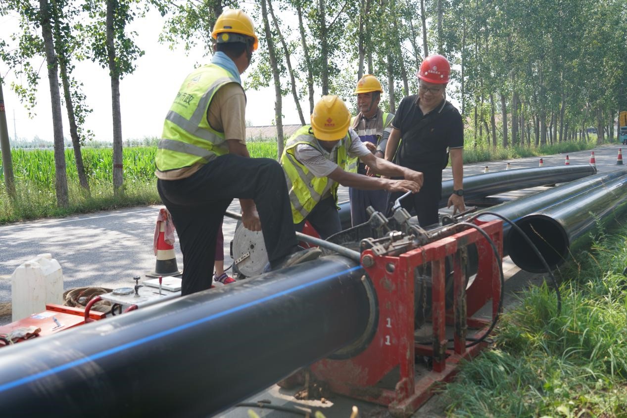 8月2日上午,滨州五海自来水有限公司党总支委员、副总经理刘广臣陪同山东胜利水务有限责任公司党委书记邱忠俊一行六人,走进滨435区块配套供水专线施工现场对工程建设情况进行实地督导。