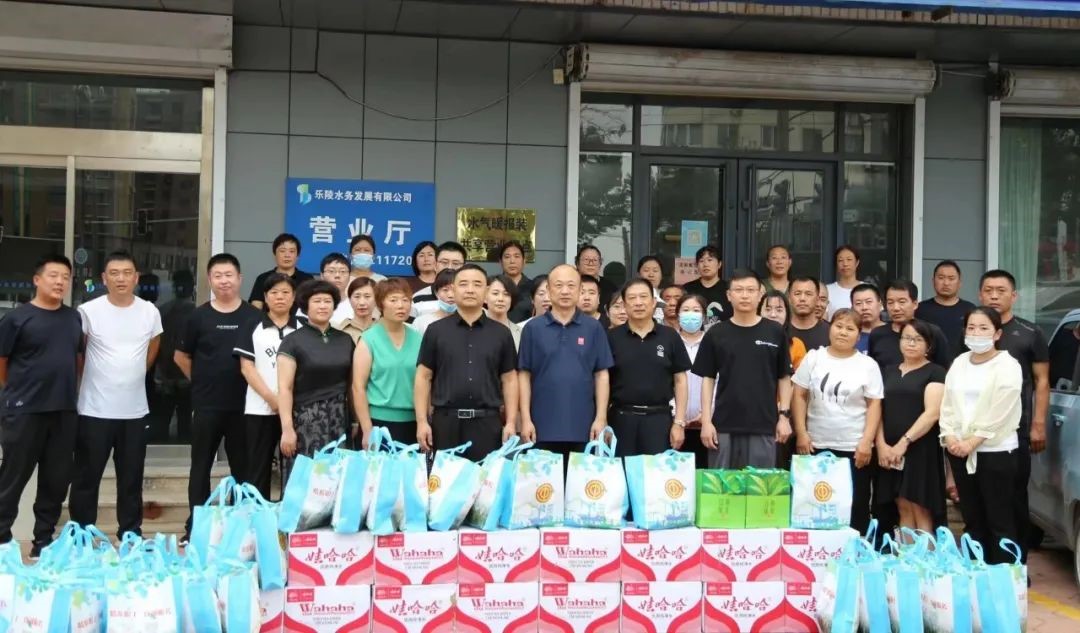 炎炎夏日送清凉,情系一线沁人心。7月28日下午,乐陵市总工会党组成员、副主席赵斌等一行来到乐陵水务发展有限公司,为炎热夏季坚守在一线的职工送来了毛巾、茶叶、矿泉水等防暑降温慰问品。