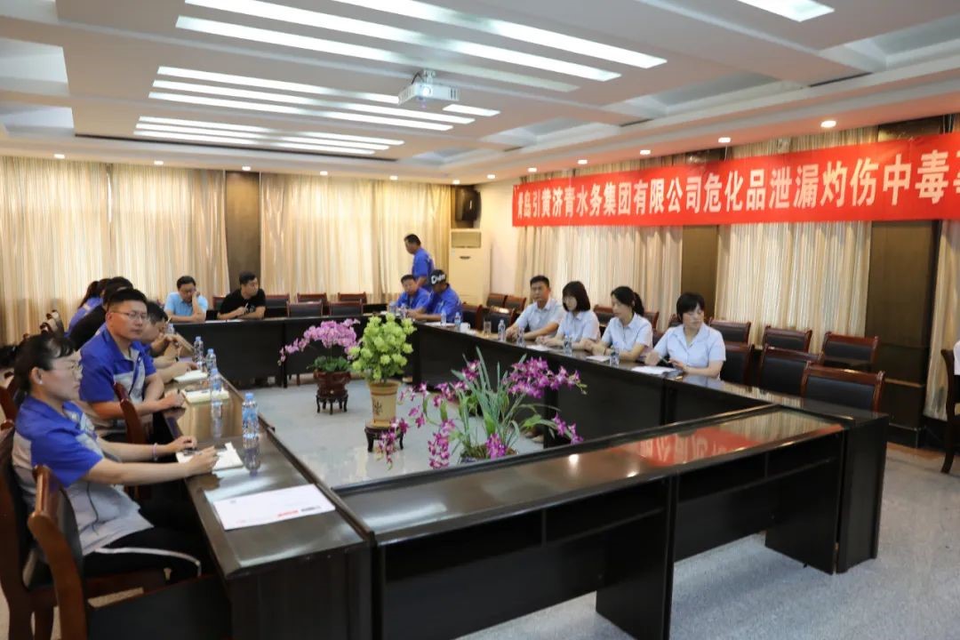 为进一步提升集团公司及各子公司危险化学品安全管理水平,近日,青岛引黄济青水务集团有限公司在棘洪滩水库水厂、棘洪滩水库管理处开展了危化品综合安全管理培训暨危化品泄漏、灼伤、中毒事故应急演练,棘洪滩水库水厂、中禹环境检测、城阳水务、碧海水务实验室操作人员、安全管理人员及相关工作人员共计20余人参加了此次活动。
