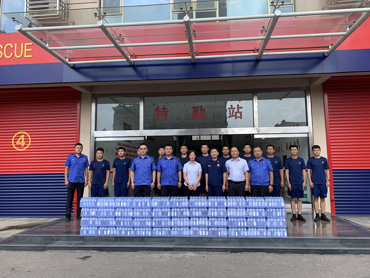 “八一”建军节到来之际,为弘扬军企共建的优良传统,济宁中山公用水务有限公司党委委员、工会主席一行,前往济宁市消防救援支队进行共建慰问,给战斗在一线的消防战士赠送消暑降温的矿泉水,送去一份夏日的清凉,并致以节日的祝福。