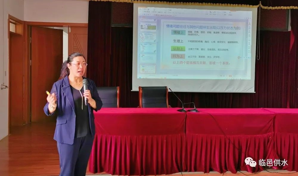 为引导职工树立积极向上的健康心态,提升自我心理调节能力与幸福指数。6月28日,临邑县“阳光导航 携手前行”基层系列活动第189场走进山东汇临水务有限公司,国家三级心理咨询师、临邑县实验中学一级教师刘新玲老师以《健康心理 幸福生活》为题,为公司广大干部职工讲授了一堂生动的心理健康课。