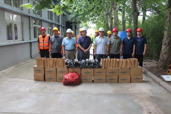 7月10日,在胶州市上合示范区梧桐美寓小区建设工地现场,青岛胶州自来水有限公司工会为这里的施工建设者们送去了矿泉水、高温茶、风油精、洗漱用品等防暑降温用品,由此拉开了为期1个月的关爱职工送清凉活动的帷幕。