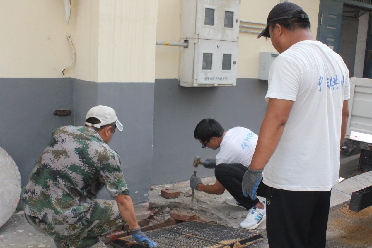 7月10日下午2:00,宁阳县华龙水业有限公司营销管理科工作人员在抄表过程中发现土产公司家属院2号楼2单元水表井破损严重,上报公司申请更换。