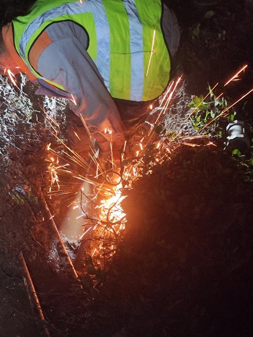 夏日的夜晚,一弯新月挂在天空。在博山青龙山青龙园,一群身穿反光背心、头戴安全帽的淄博水务集团津源供水人在紧张地忙碌着:切割、排水、维修、调试、回填路面……他们身后,是城市点点的灯光。
