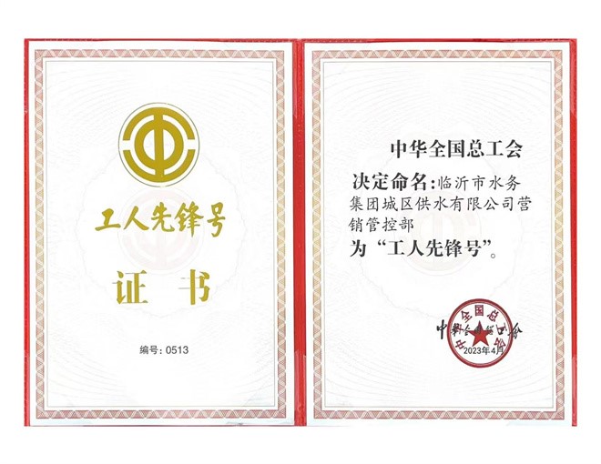 近日,中华全国总工会公布了2023年“全国五一劳动奖”和“全国工人先锋号”表彰名单,临沂市水务集团城区供水有限公司营销管控部被授予“全国工人先锋号”荣誉称号。