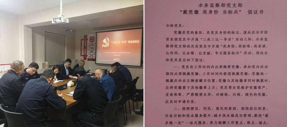 为激发广大党员干事创业热情,教育引导全体党员立足本职岗位,进一步提升政治素养,强化宗旨意识,发挥党员先锋模范作用,济宁中山公用水务有限公司监察部党支部按照公司党委部署,组织开展“三亮三比一争当”活动。