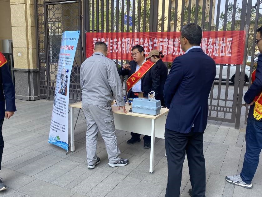 4月27日上午,青岛胶州自来水有限公司公司以习近平新时代中国特色社会主义思想主题教育活动为契机,组织党员、职工10余人到胶州市中云街道办事处天泰幸福里小区,开展“供水服务进社区”志愿服务活动,切实将暖心贴心用心的优质供水服务带进辖区内的千家万户。