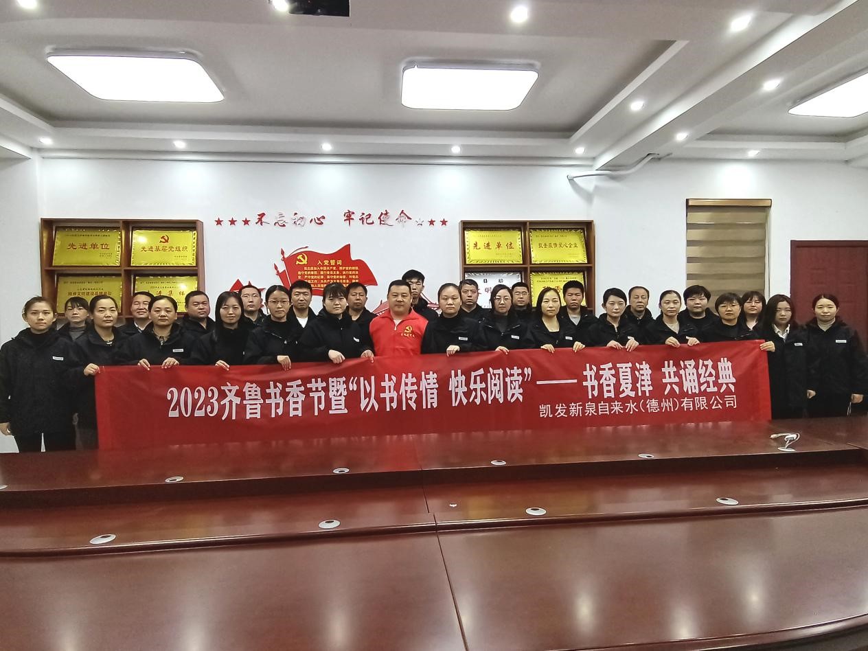 2023年4月23日,是第二十八个“世界读书日”,为学习贯彻党的二十大精神,弘扬优秀传统文化,进一步丰富全体干部职工的文化生活,让大家爱上阅读,多读书、读好书,营造“书香夏津、共诵经典”的浓厚氛围。按照“红动夏津 四季有我”二十四节气主题党员志愿服务系列活动方案安排,23日上午,凯发新泉自来水(德州)有限公司组织28名党员干部职工共同开展2023齐鲁书香节暨“以书传情 快乐阅读”——书香夏津 共诵经典活动。