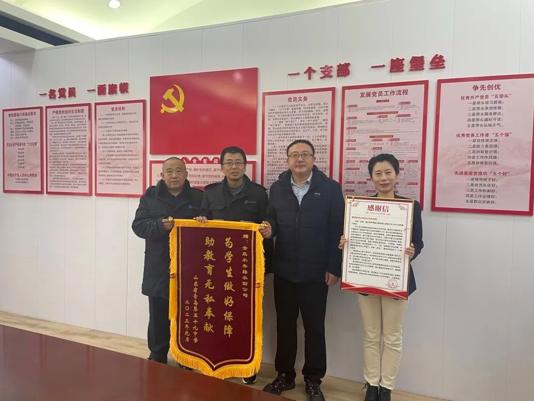 党的二十大报告强调,要深入群众、深入基层,采取更多惠民生、暖民心举措,着力解决好人民群众急难愁盼问题。为进一步推动党的二十大精神在青岛水务集团排水公司落地生根,排水四分公司党支部积极开展“党建+服务”暖心行动,精准对接共建支部,解决群众身边“急难愁盼”的排水问题,受到了社会各界的广泛好评,在短短半个月时间就收到三面锦旗和一封感谢信。