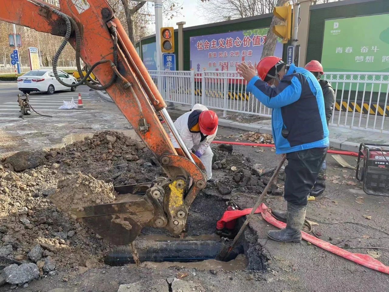近期,济宁市进入持续低温环境,丝毫没有影响济安桥路(常青路-太白路)给水管道迁改工程的推进进度。为保障城区供水,济宁中山公用水务工程管理部不分昼夜,合理利用夜间用水低峰期推进管道合口工作。