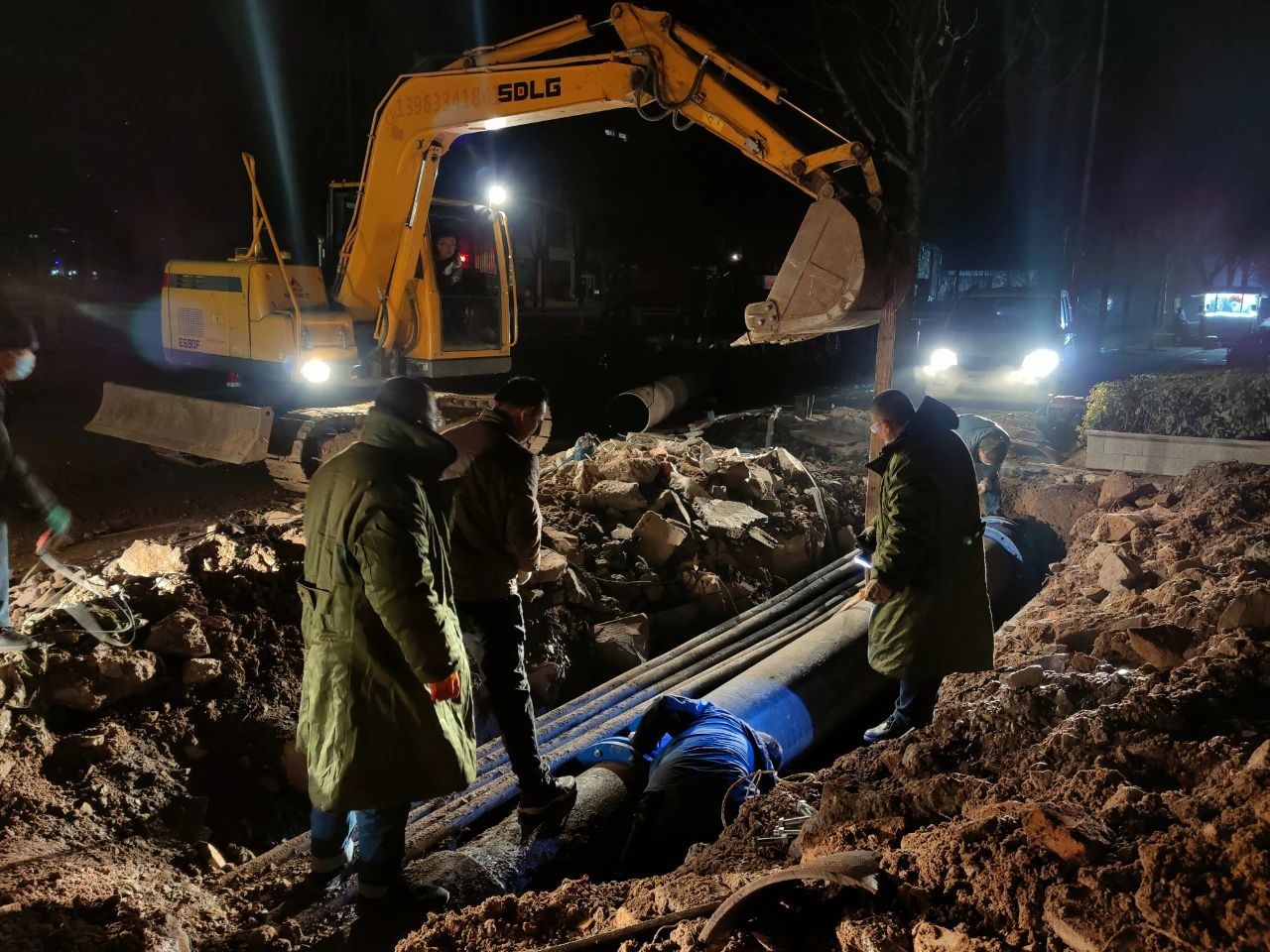 冬季的深夜,凛冽的寒风吹得人瑟瑟发抖,在洸河路与新华路交叉口附近的管网抢修人员却依然穿梭于维修现场各个角落。济宁中山公用水务有限公司员工不畏严寒,为提升服务,保障供水,与时间赛跑、与寒流赛跑,只为坚守供水人的初心使命及为民办实事的郑重承诺。