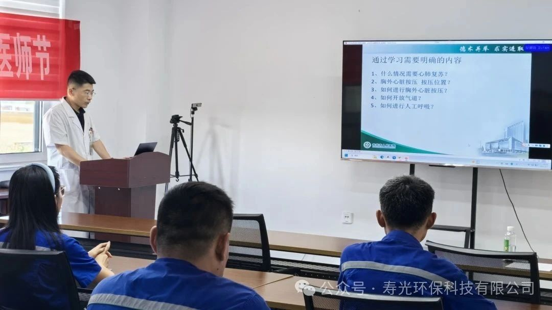 为进一步提升员工应急急救能力,筑牢职场安全防线,8月7日下午,寿光环保科技有限公司特别邀请寿光市人民医院急诊科张海主任,在羊口污水厂二楼北会议室开展“急救培训 点亮职场安全”主题培训活动。