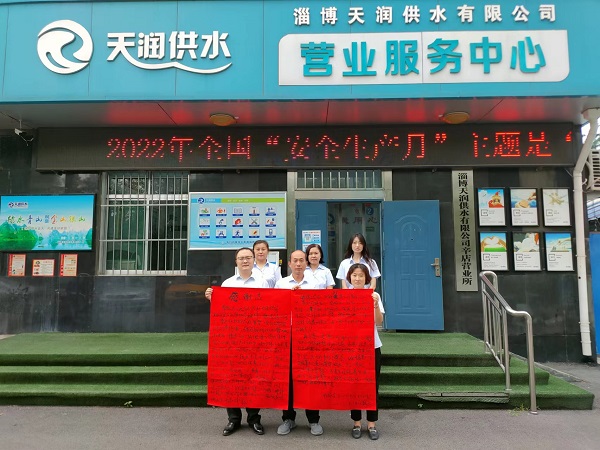 2022年7月18日,家住临淄区闻韶南37号楼的齐鲁石化退休职工将一封手写的感谢信送到淄博天润供水有限公司,对天润供水心系用户、风雨无阻的服务表示感谢。