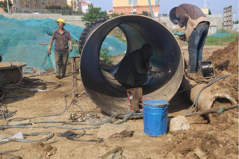 1.4米粗的输水管道,深达5米的作业坑,轰轰作响的挖掘机,电焊焊花飞溅……6月19日,随着集贤村输水管道对接成功,全长24公里的门楼水库提升泵站至莱山水厂输水管道工程全线竣工。