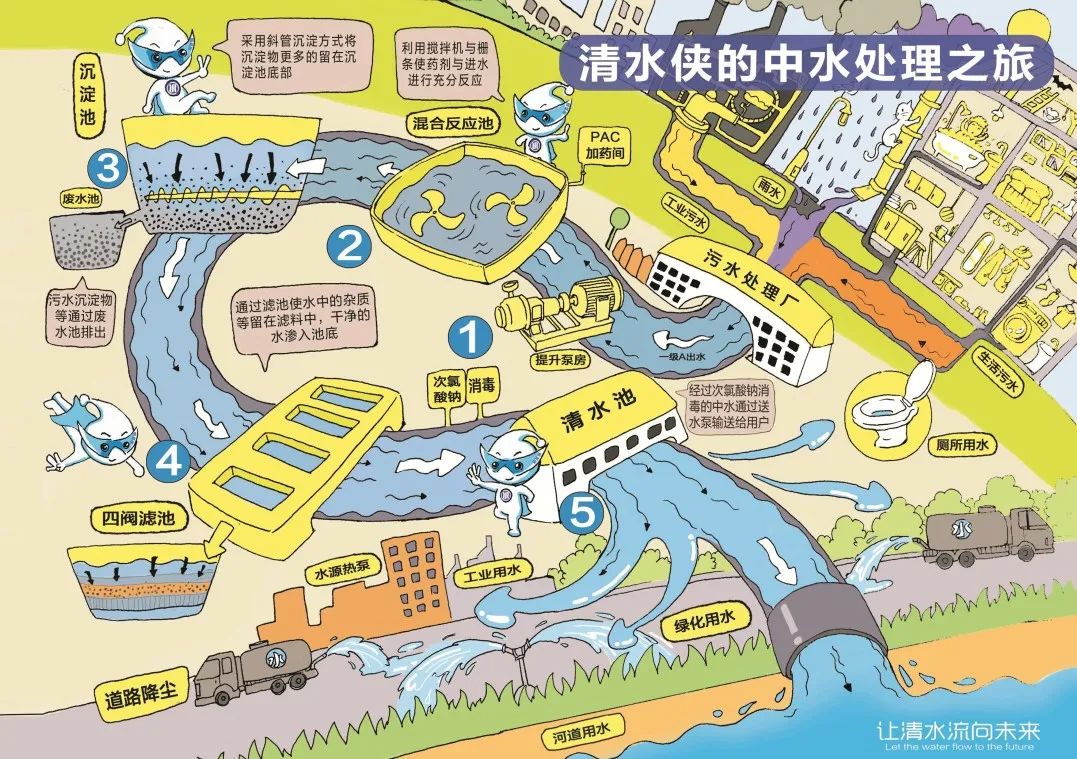 再生水回用作为青岛水资源循环利用的重要环节,其出水水质和利用率逐年提高,目前已广泛应用于河道景观、水源热泵、园林绿化、道路冲洗、工业冷却等非饮用水领域。