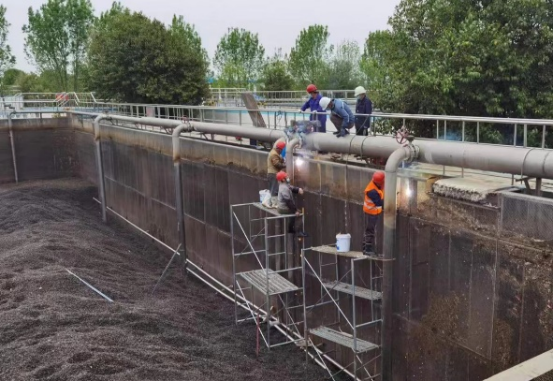 为保证污水处理的高效运行,兖州区公用水务有限公司抓住年度进水液位最低时间节点,提前谋划、全面部署,在保障工艺运行正常的情况下,本着“预防为主的原则”,由设备维修中心牵头,于4月14日、4月18日分阶段对第一污水处理厂曝气池滤网进行了检修工作。