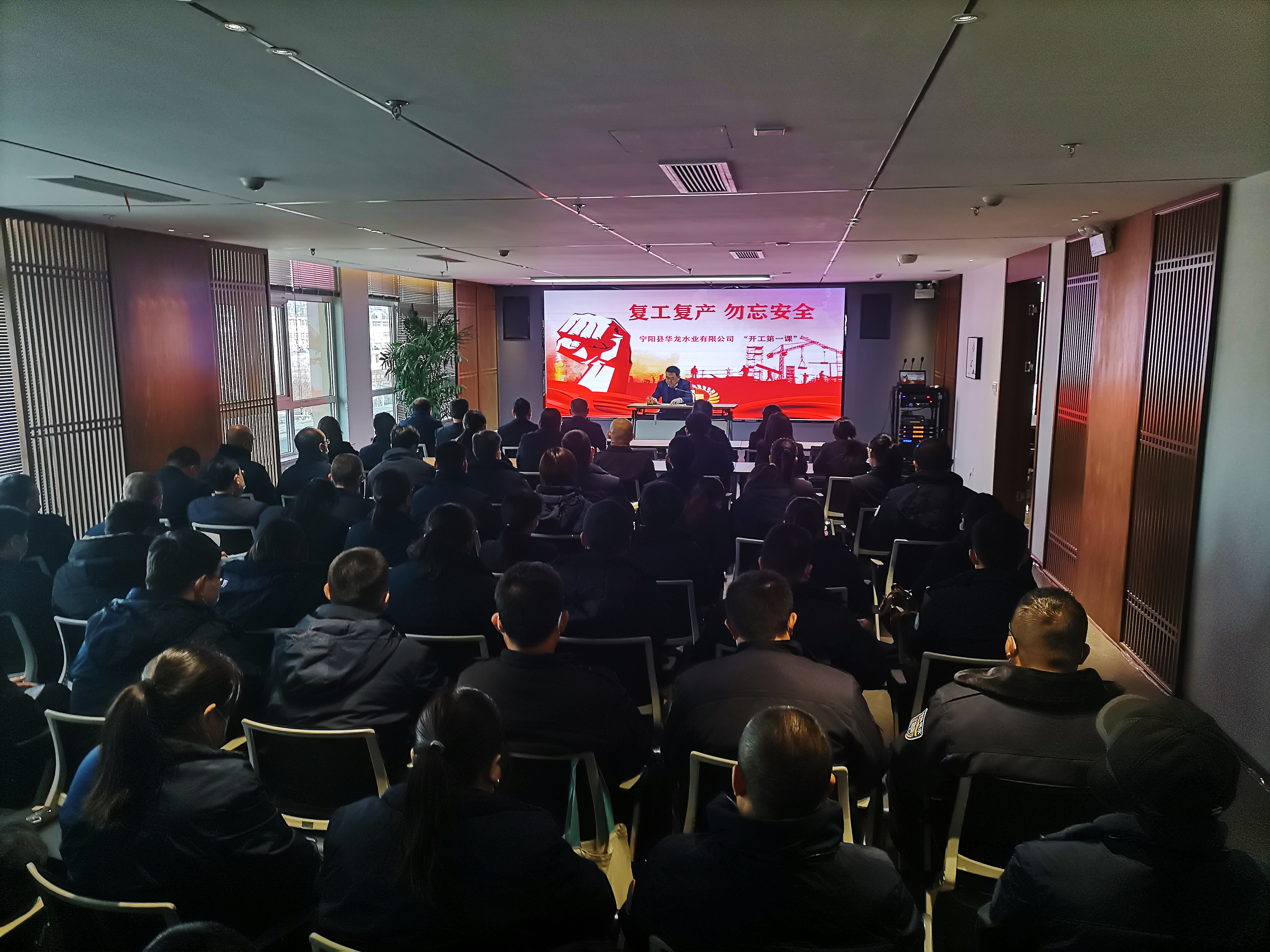 2022年2月7日,春节假期开班第一天,宁阳县华龙水业有限公司组织全体职工开展安全生产“开工第一课”活动,进一步推进落实安全生产主体责任,确保节后顺利复产复工。