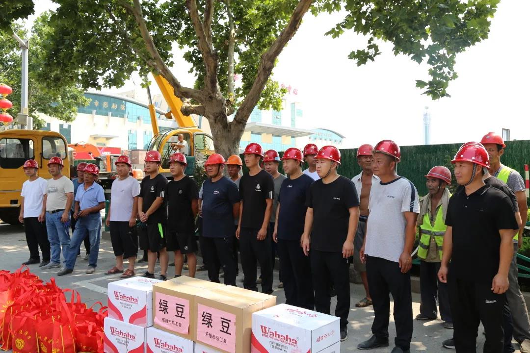 7月26日上午,为切实做好高温天气下的一线职工防暑降温工作,市总工会副主席赵斌一行来到乐陵水务发展有限公司开展“夏日送清凉”慰问活动,将饱含关心和关怀的毛巾、风油精、绿豆、矿泉水等防暑降温“清凉礼包”送至战高温、斗酷暑、奋战在一线的乐陵水务职工手中。