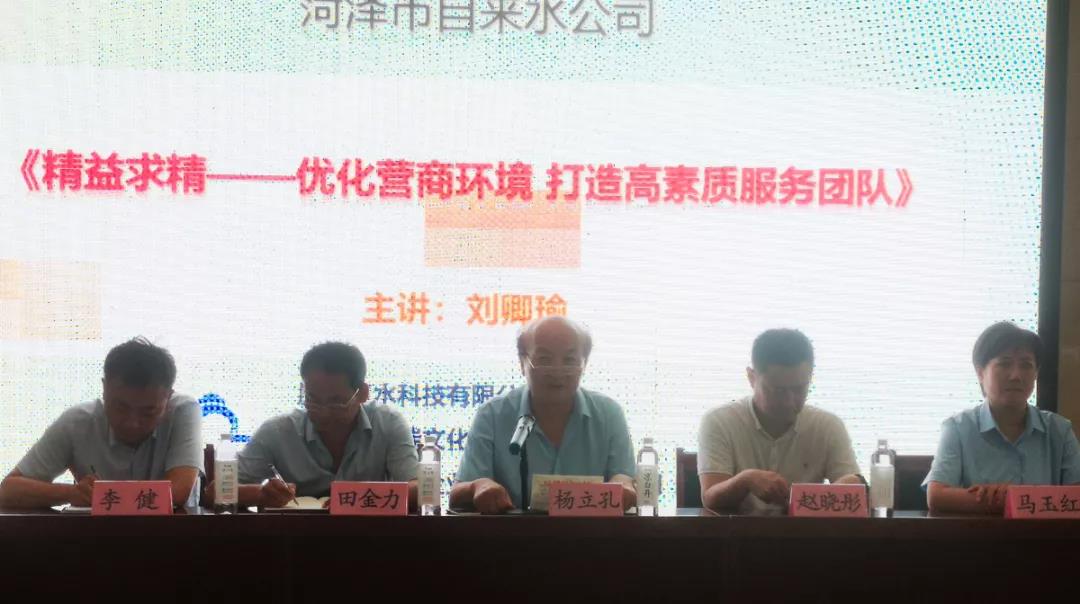 为进一步提升用水服务质效,优化营商环境,菏泽市自来水公司邀请专业培训机构来菏水司开展服务技能提升培训,菏泽市自来水有限公司党总支书记杨立孔、总经理赵晓彤和其他领导班子成员出席开班仪式,生技科、客服中心、营业室、供水维修等窗口单位全体人员共71人参加培训。