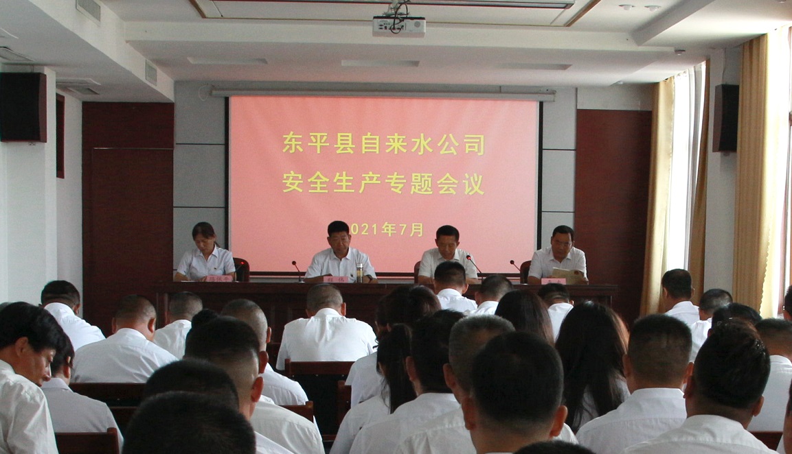 7月14日,东平县自来水公司召开安全生产专题会议,会上观看了安全生产警示教育片,学习新《安全生产法》,并对当前安全生产工作进行安排部署。东平县自来水公司领导班子成员、中层干部、行管人员和各科室安全员参加会议,会议由党总支副书记路保平主持。