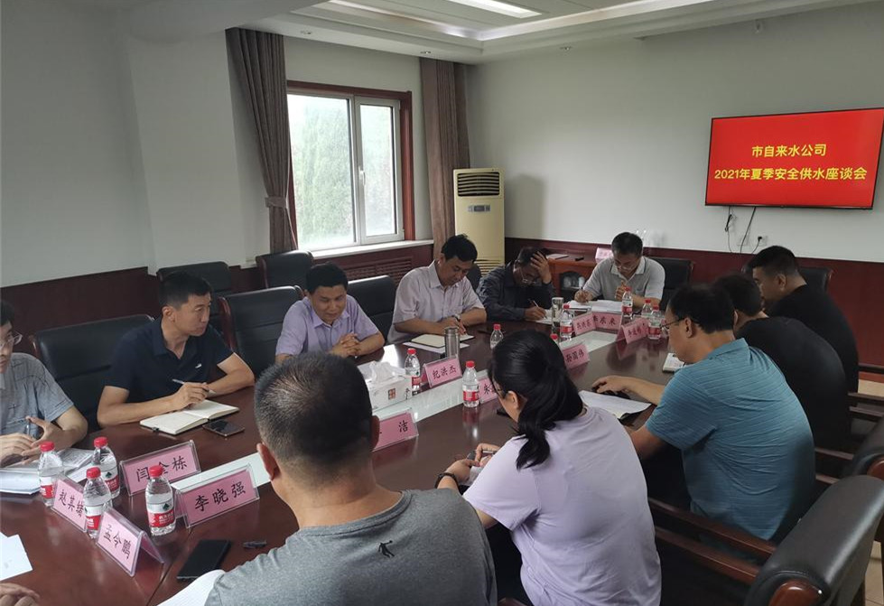 为确保今夏安全优质供水,保障城区生产、生活用水需求,7月16日上午,东营市自来水公司副经理纪洪杰在南郊水厂主持召开了2021年夏季安全供水座谈会,水厂、水源、总调度室、优质水站等科室负责人及各班组长参加座谈。