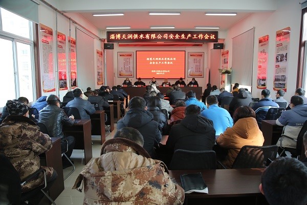 1月17日,淄博天润供水有限公司召开安全生产工作紧急会议,大会由公司党总支书记、董事长、总经理康杰主持,班子成员、各党支部书记、各部门部长、中层以及各施工单位监理单位的负责人、项目经理、安全员参加了本次会议。