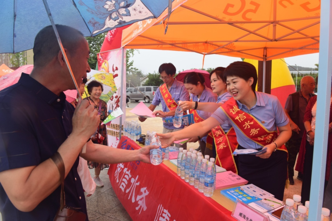 威海市水务集团有限公司在开展供排水服务工作中,强化党建引领,坚持把爱心公益理念贯彻到为民服务工作中, 9月1日,在“中华慈善日”即将到来之际,威海市水务集团党委组织部分党员、团员志愿者,来到威海市文明委、长城爱心大本营在张村体育公园举办的“聚慈善之力、绘美好明天”爱心公益市集,开展“诚信水务 清润万家”爱心志愿服务和公益宣传活动,进一步弘扬慈善精神,向市民奉献爱心,并获得央视网络平台“央视频”关注和现场采访。