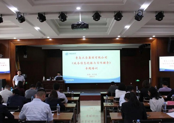 6月17日下午,青岛水务集团有限公司办公室会同培训中心,在该集团公司2号楼礼堂举办政务信息挖掘与写作辅导讲座,特别邀请青岛市政府办公厅信息调研室副主任刘乃凯,为该集团信息员进行专题培训。本次培训采用线下会场和线上直播并行的方式进行,各单位办公室主任和信息员40余人参加现场培训,391人次观看线上直播,时间220分钟。