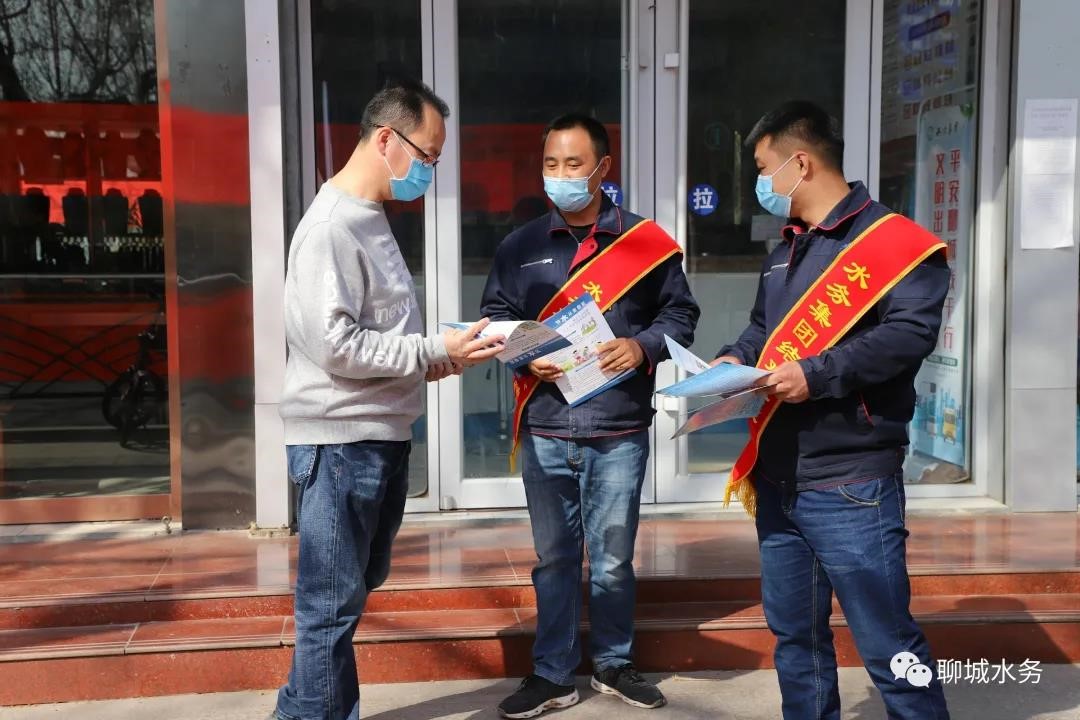 3月22日上午,聊城水务集团10余名党员志愿者走上街头,开展了“世界水日·中国水周”宣传活动,倡导科学调水,依法管水,安全供水。