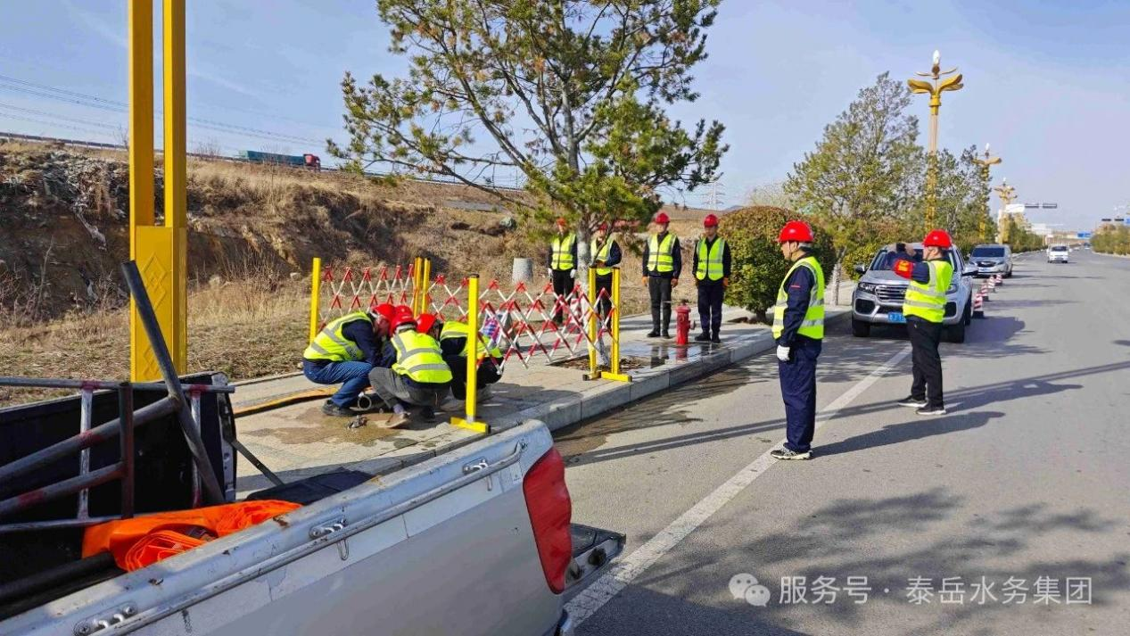 近日,泰安市自来水有限公司在岱岳区下水泉街组织开展了一场供水管道抢修“四不”应急演练。通过不提前通知、不设定脚本、不预设场景、不指定地点的实战化模式,全面检验应急响应机制和抢修实战能力。