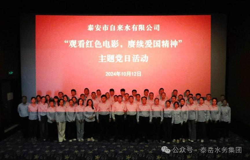 近日,泰安市自来水有限公司党委开展“观看红色电影,赓续爱国精神”主题党日活动,集体观看电影《我的爷爷》。公司领导班子成员,各党支部书记,各团组织书记,部分党务工作者、党员,青年工作各小组组长等50余人参加活动。