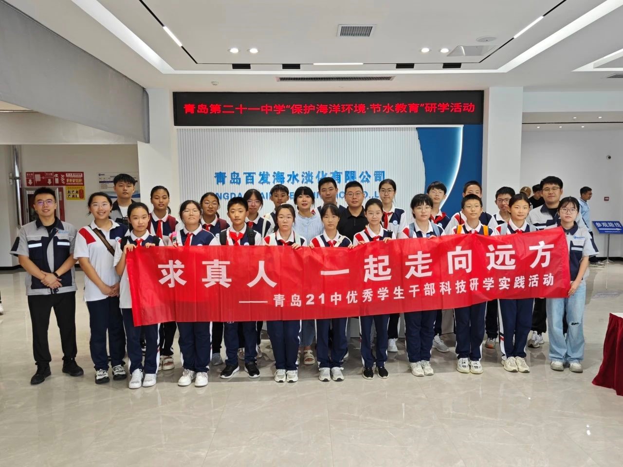 近日,青岛百发海水淡化有限公司团委、工会联合青岛第二十一中学团委举办“保护海洋环境·节水教育”百发海水淡化厂研学活动,为40余名师生带来了一场妙趣横生的“节水小课堂”。