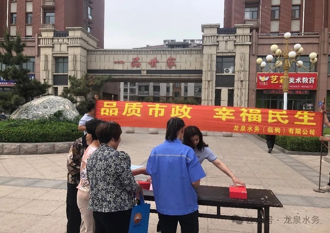 7月18日,龙泉水务(临朐)有限公司客服人员走进一品世家小区,开展“品质市政、幸福民生”供水服务进社区志愿服务活动。