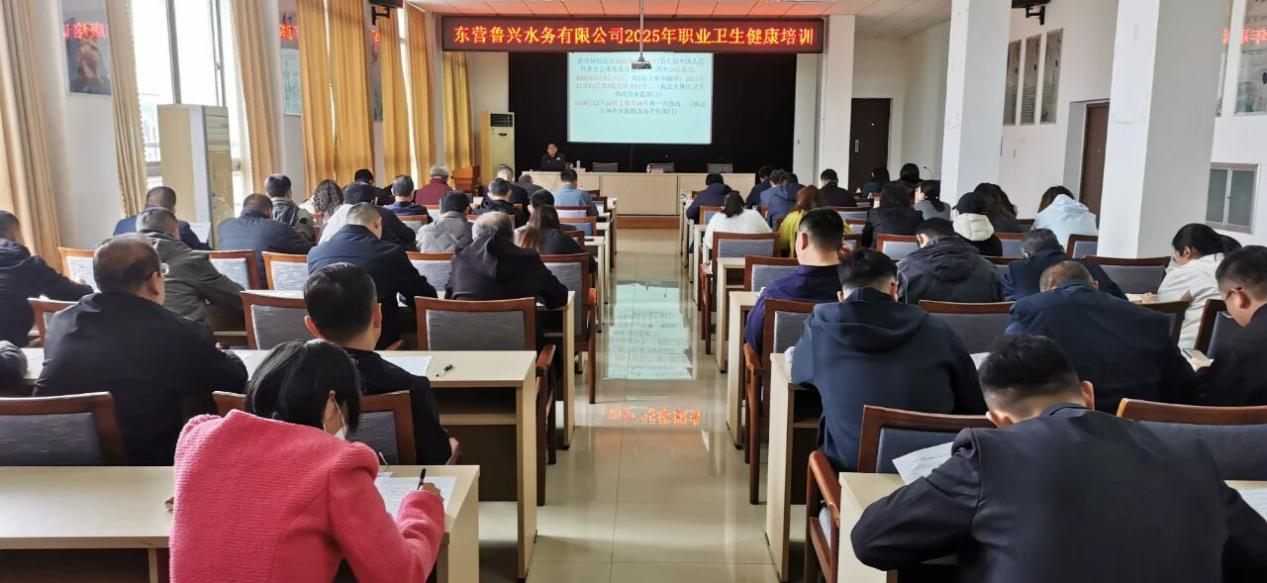 近日,东营鲁兴水务有限公司顺利通过东营市卫健委职业卫生健康评审,这标志着公司职业卫生健康管理工作实现重大提升。为巩固工作成果,进一步强化员工职业健康防护能力,10月23日上午,东营鲁兴水务有限公司组织开展了“2025年职业卫生健康培训”。公司领导班子,各部室、单位安全生产负责人及一线员工代表共60余人参加培训。
