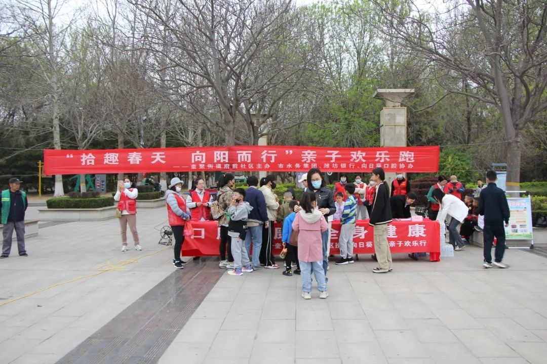 4月13日,昌邑市水务集团有限公司参加奎聚街道府前社区举办“拾趣春天 向阳而行”亲子欢乐跑志愿服务活动,协助维持活动秩序以及安全问题,保障活动顺利举办。